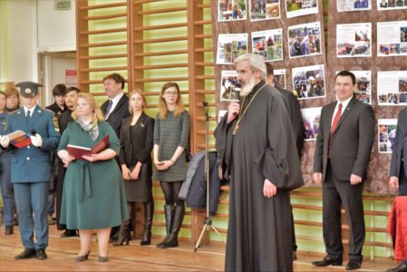 28 февраля благочинный Красносельского благочиннического округа, настоятель храма св. прав. Иоанна Кронштадтского на Кронштадтской пл. прот. Михаил Подолей по приглашению администрации ГБОУ СОШ № 493 присутствовал на принятии Торжественного обещания кадетских классов. Прот. Михаил обратился к учащимся и их наставникам с напутственном словом.