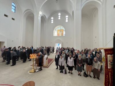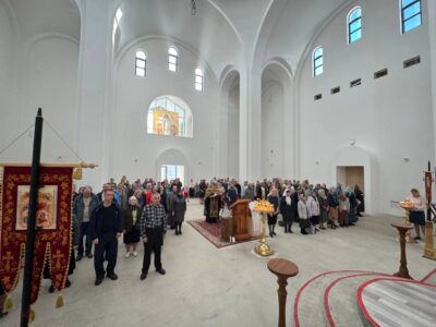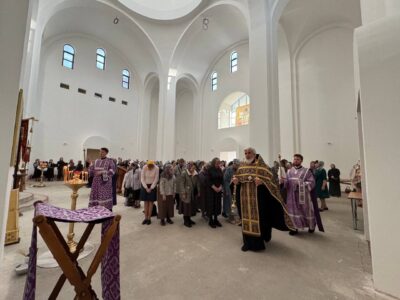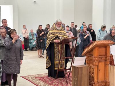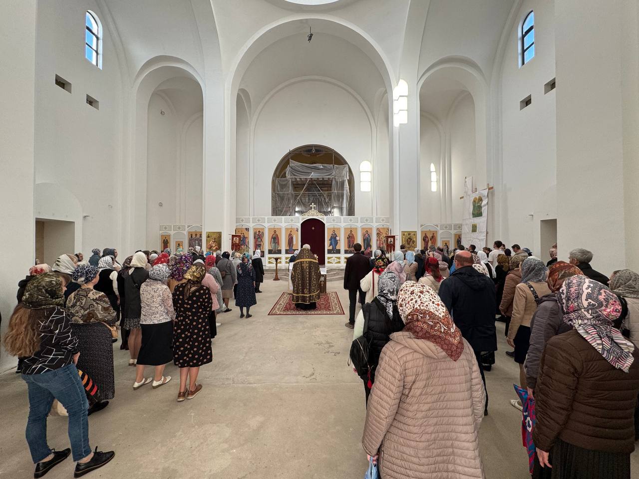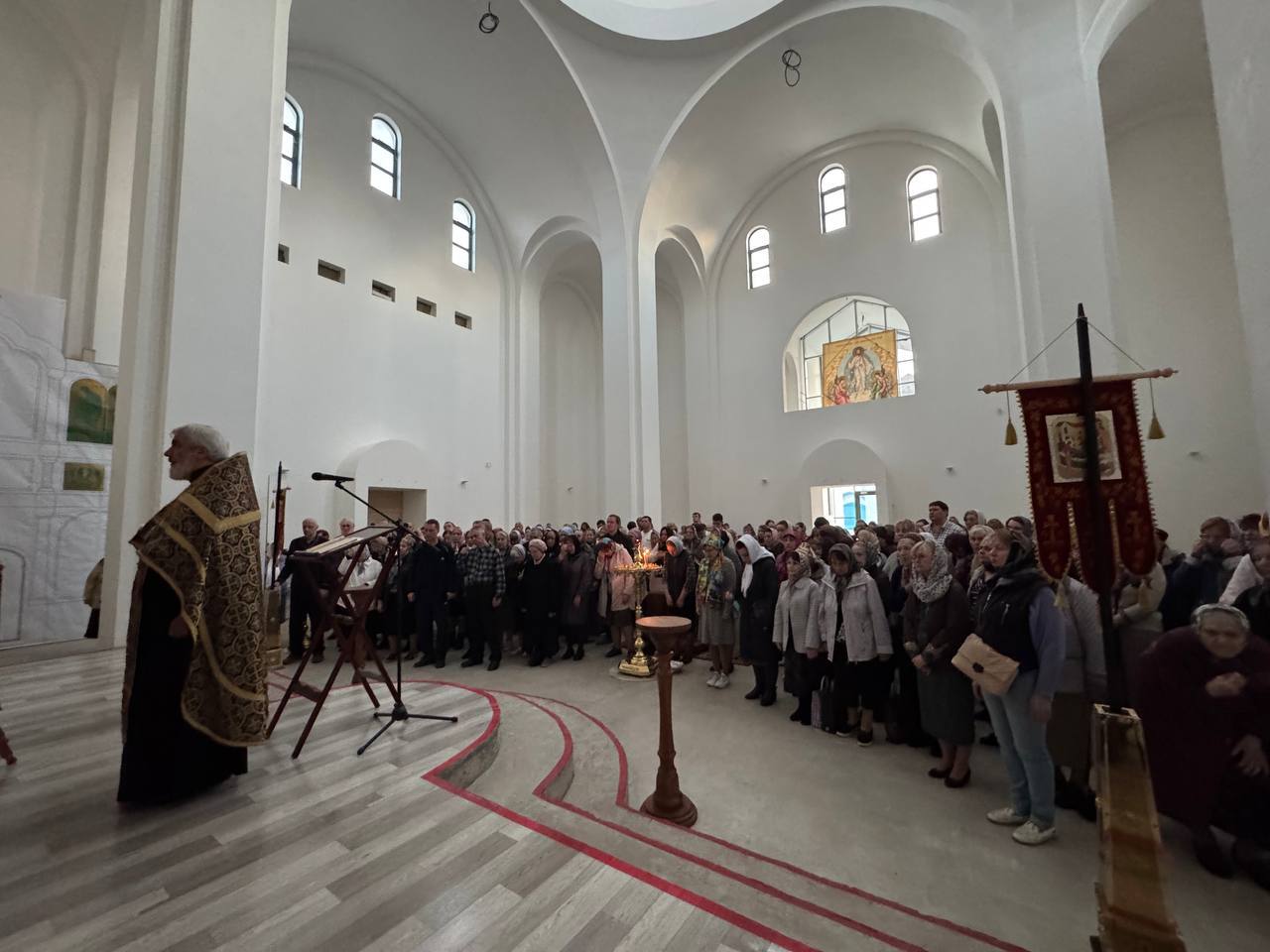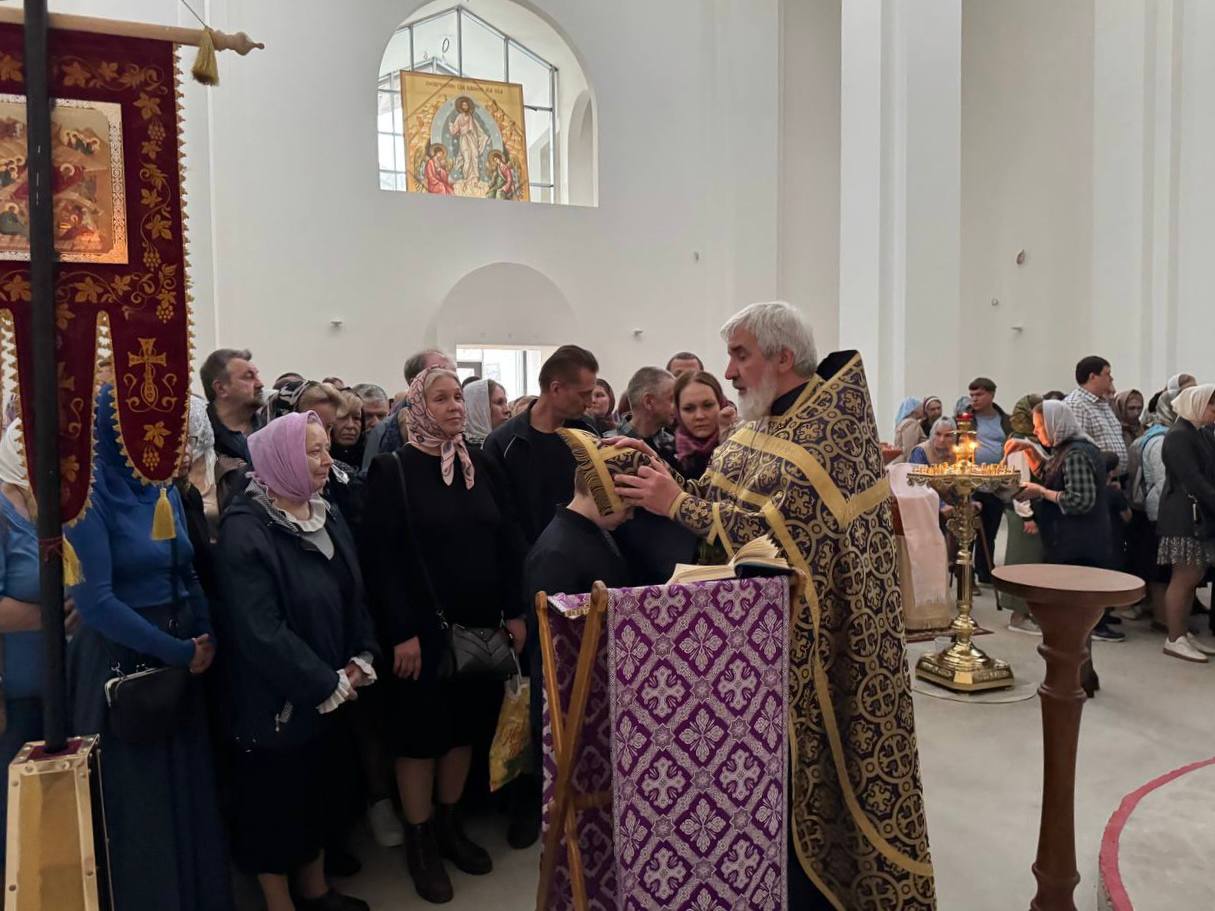 Вечером 16 апреля 2025 года, в канун Великого Четвертка, в строящемся храме Всемилостивого Спаса уставное богослужение — утреню — совершил настоятель храма протоиерей Михаил Подолей в сослужении клира.