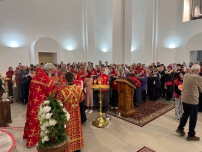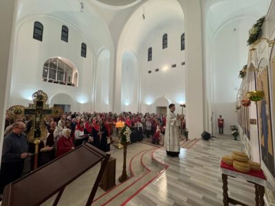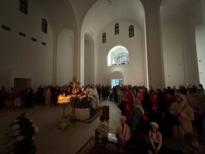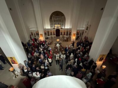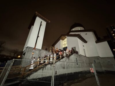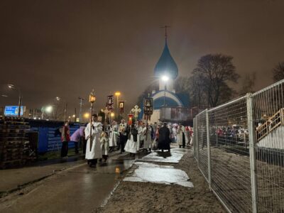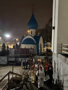В 12 часов ночи по местному времени при пении стихиры «Воскресение Твое, Христе Спасе, ангели поют на небесех, и нас на земли сподоби, чистым сердцем Тебе славити» вокруг храма был совершен крестный ход.