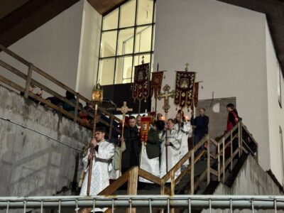 Пасхальные богослужения — полунощницу с каноном Великой Субботы, заутреню и Божественную литургию — в ночь с 19 на 20 апреля 2025 года, в строящемся храме Всемилостивого Спаса совершил настоятель храма протоиерей Михаил Подолей в сослужении клира.