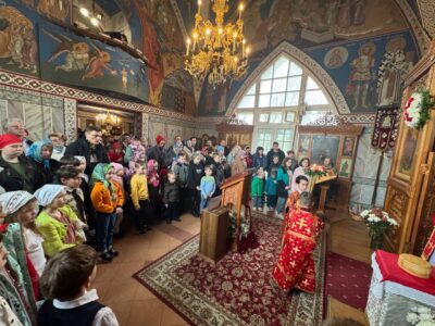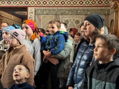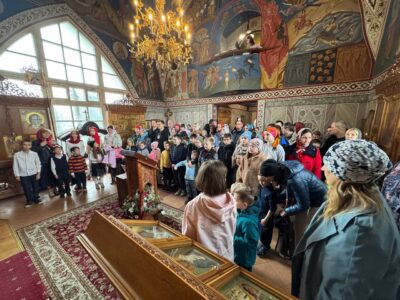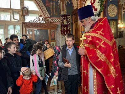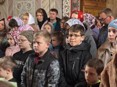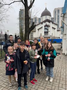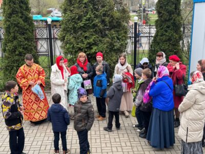 За вечерней вместе с прихожанами молились воспитанники и сотрудники центра для детей-сирот и детей, оставшихся без попечения родителей «Центр содействия семейному воспитанию № 6», которые после богослужения поздравили настоятеля, священнослужителей и прихожан храма с Праздником Пасхи.