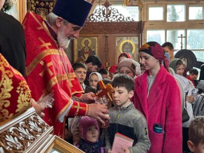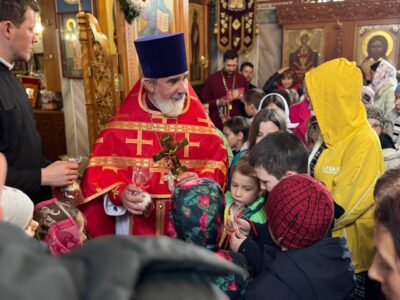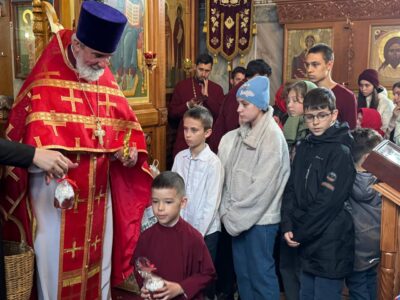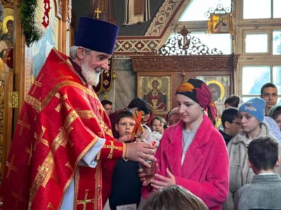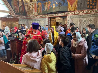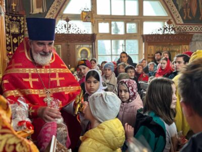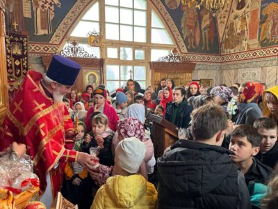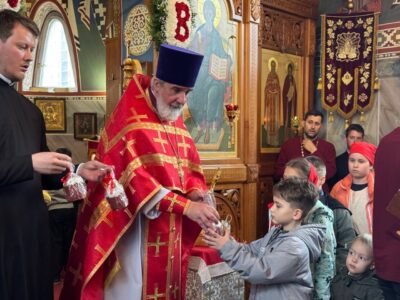 Всем детям, молившимся за богослужением, были подарены Пасхальные куличи.