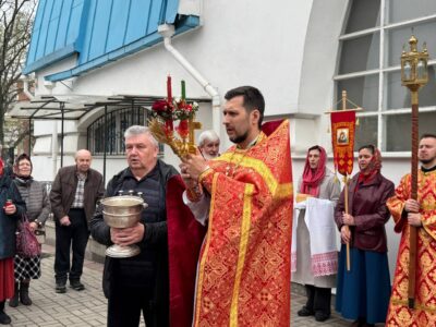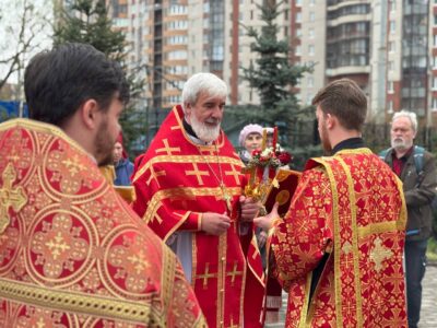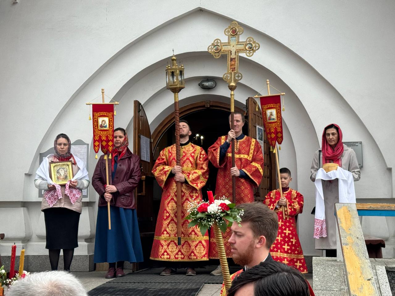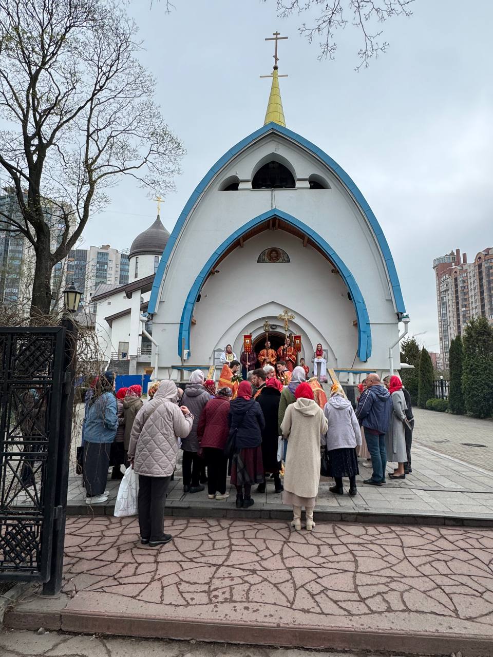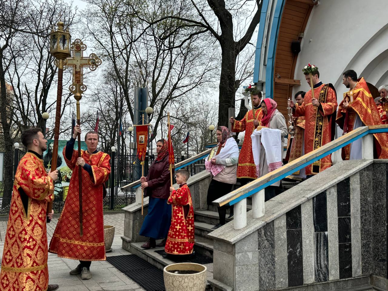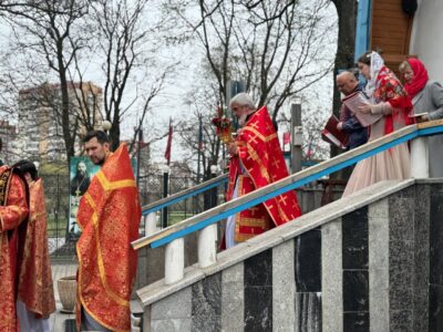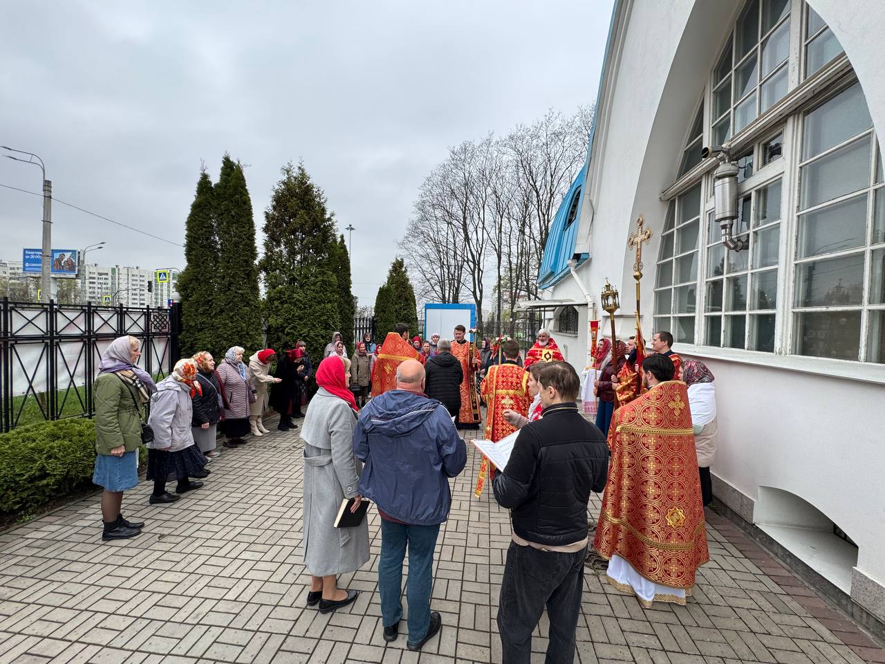 21 апреля 2025 года, в понедельник Светлой седмицы, в храме святого праведного Иоанна Кронштадтского на Кронштадтской площади Божественную литургию совершил настоятель храма протоиерей Михаил Подолей в сослужении клира.