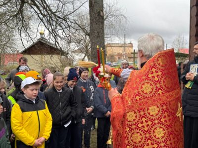 После Литургии был совершен Чин освящения воды и Крестный ход вокруг храма, в котором приняли участие школьники ГБОУ школа-интернат №289, посетившие храм в рамках Пасхальных встреч, традиционно проводимых на Светлой седмице в храмах Красносельского благочиния. После этого священнослужители рассказали детям о празднике Светлой Пасхи и о значении Воскресения Христова. Были проведены мастер-классы по изготовлению пасхальных открыток и колокольному звону, где каждый учащийся мог сам позвонить в колокола, возвещая пасхальную радость.