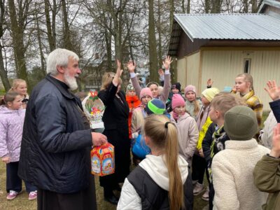 В завершение встречи детей угостили пасхальными куличами и вручили вкусные подарки.