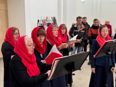 За Литургией пел любительский хор прихода храма святого праведного Иоанна Кронштадтского под управлением регента Марины Паниной.