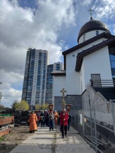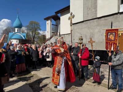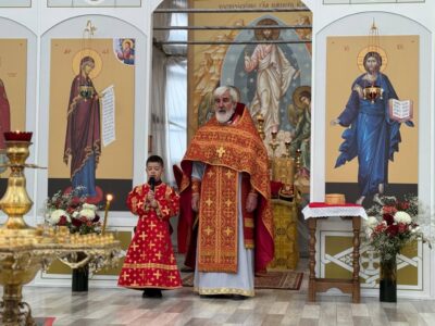 В конце Литургии был совершен Крестный ход вокруг храма, а также прочитана молитва на раздробление артоса, который после богослужения раздали всем прихожанам.