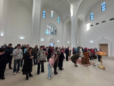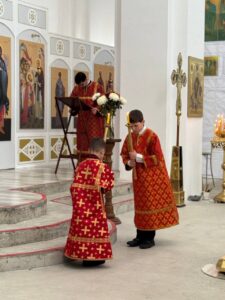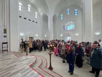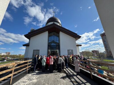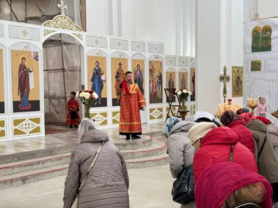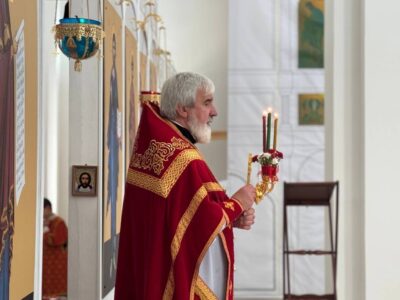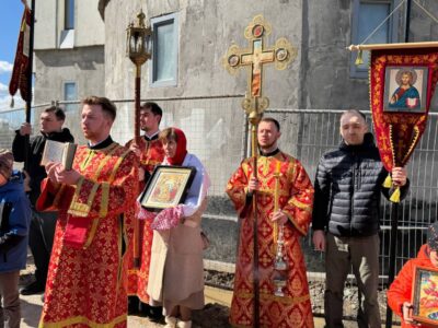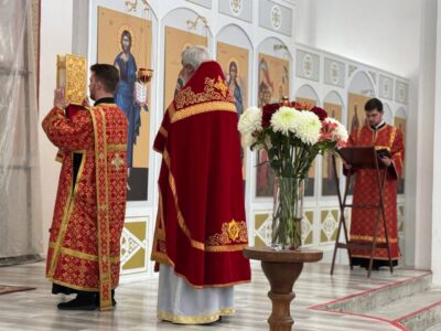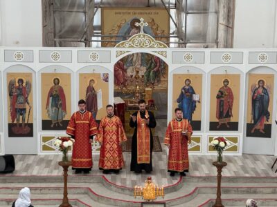 27 апреля 2025 года, в Неделю Антипасхи, Божественную литургию в строящемся храме Всемилостивого Спаса совершил настоятель храма протоиерей Михаил Подолей в сослужении клира.