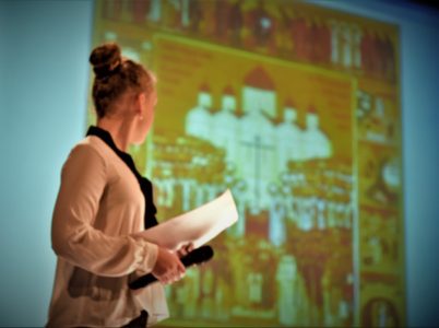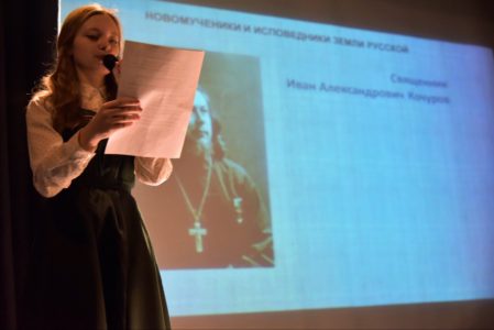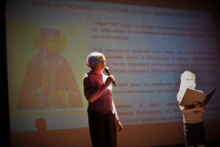 С рассказами о трагических судьбах новомучеников выступили учащиеся и преподаватели Воскресной школы храма. В тишине зала звучали взволнованные голоса детей и взрослых. Слайды с фотографиями и документами сопровождали повествование. Ирина Александровна Чечельницкая, прихожанка нашего храма, рассказала каким важным событием для нее и ее близких стало открытие, что их родственница Афанасия Лепешкина прославлена в лике новомучеников российских.