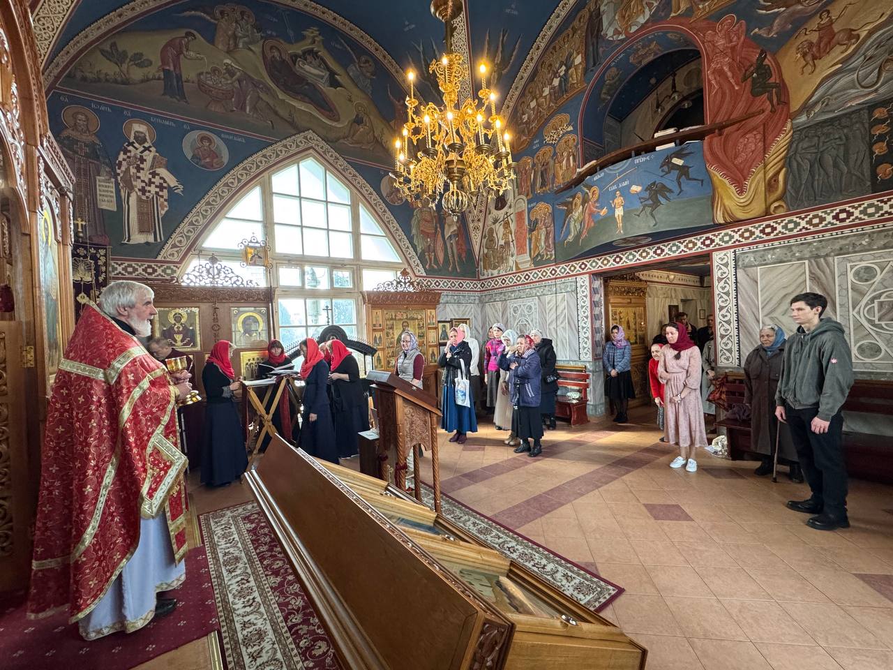 За богослужением пел любительский хор прихода храма святого праведного Иоанна Кронштадтского под управлением регента Марины Паниной.