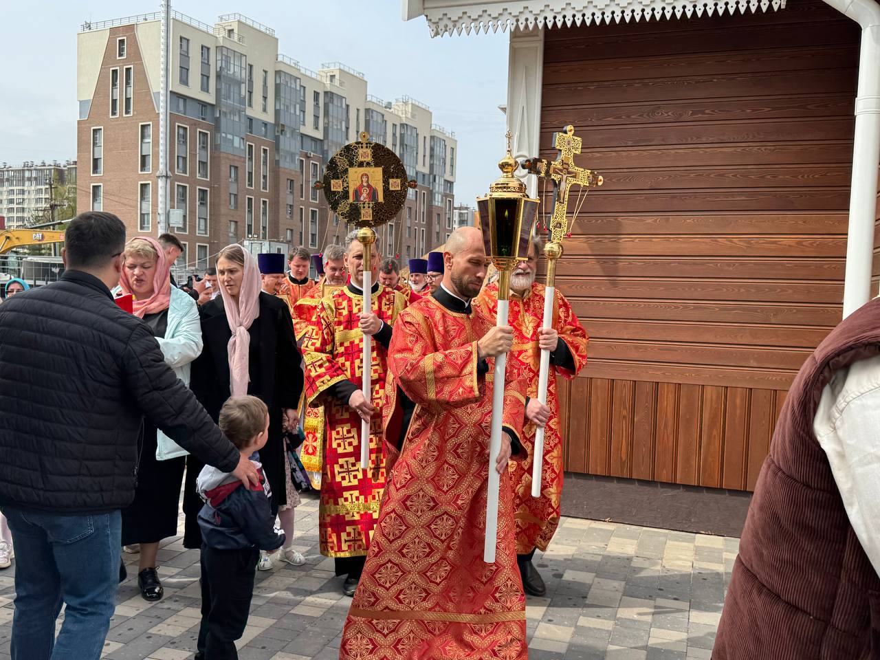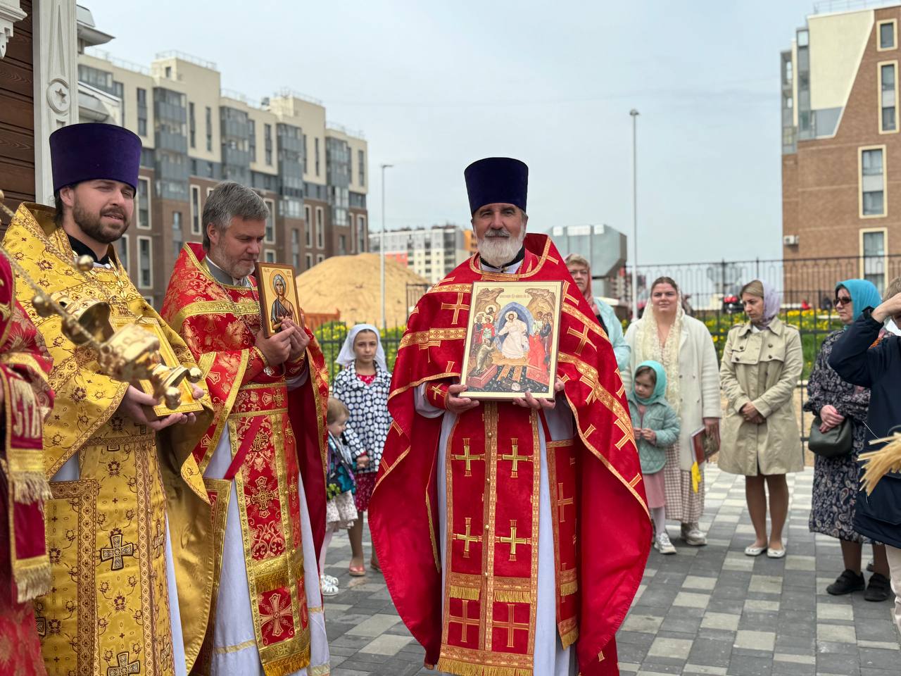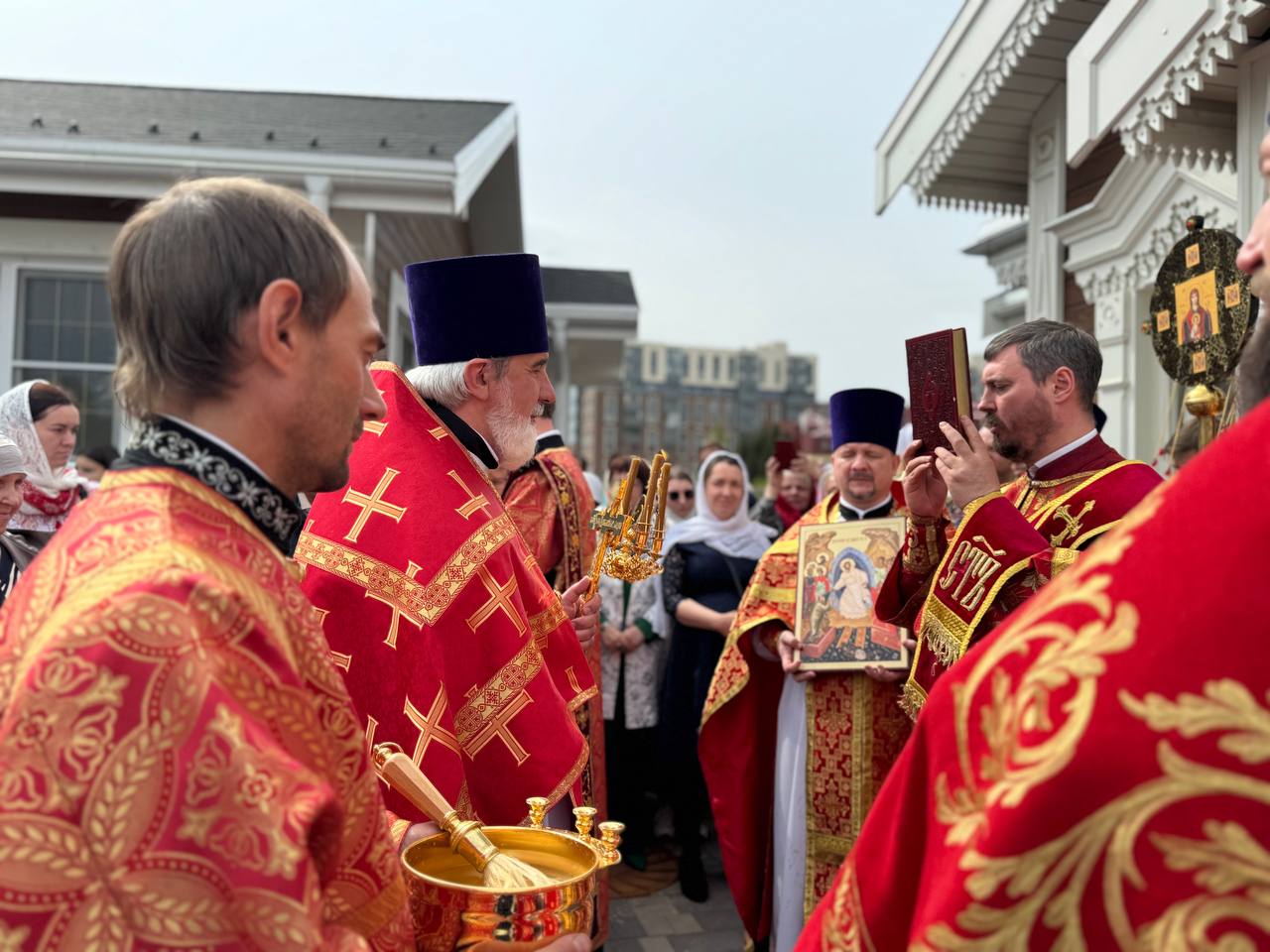 Был совершен крестный ход вокруг храма.