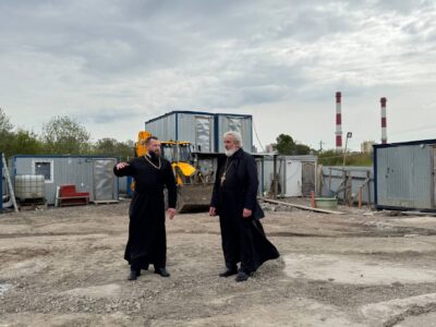 После богослужения настоятель храмового комплекса иерей Алексий Жигалов ознакомил благочинного Красносельского округа протоиерея Михаила Подолея с ходом строительных работ храма преподобной Марии Египетской.