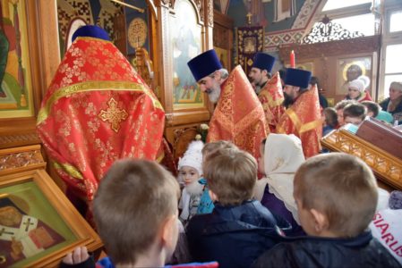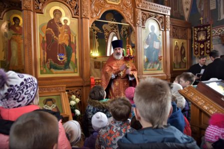 На Пасхальную вечерню пришли и мамы с детьми из Отделения социальной реабилитации «Маленькая мама» Кризисного центра помощи женщинам, воспитанниц которого духовно окормляет настоятель храма св. прав. Иоанна Кронштадтского прот. Михаил Подолей.