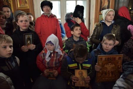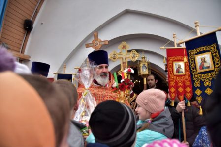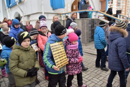 После богослужения был совершен Крестный ход, в котором участвовал двести детей. Они несли хоругви и иконы.