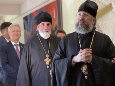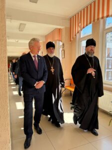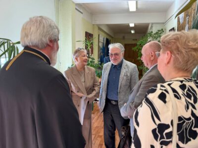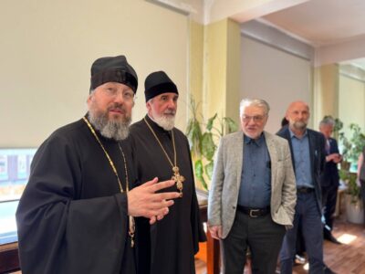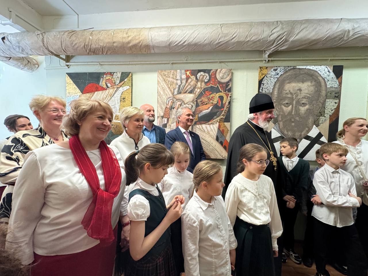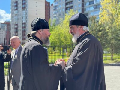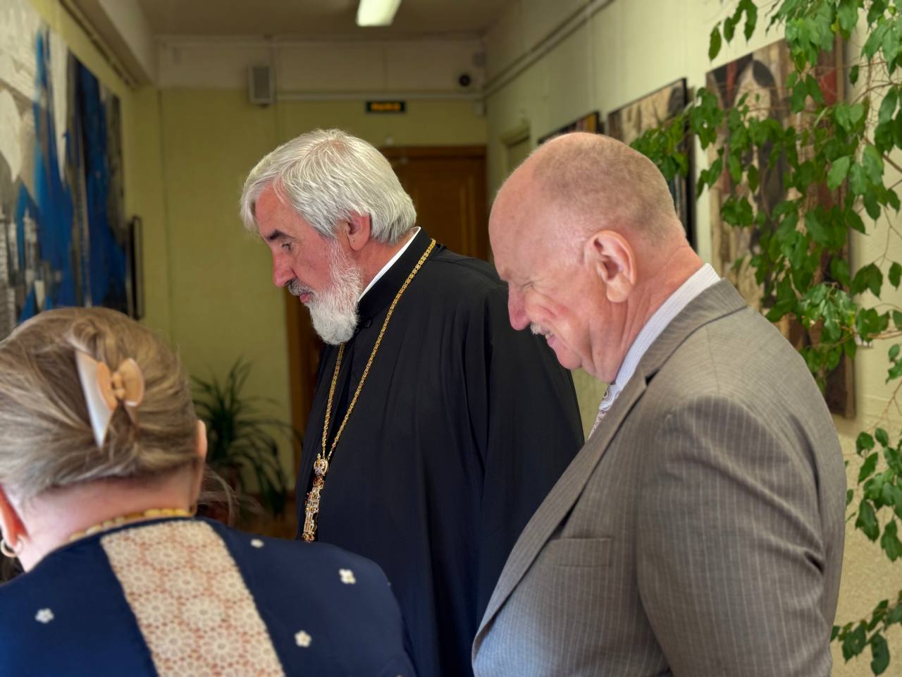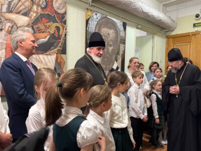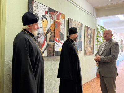 Владыка ознакомился с выставкой, пообщался с директором лицея и автором работ. Его встречал и сопровождал благочинный Красносельского благочиннического округа протоиерей Михаил Подолей. На встрече также присутствовал глава муниципального образования Санкт-Петербурга муниципальный округ Юго-Запад Семёнов Олег Александрович.