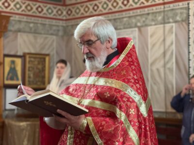 24 мая 2025 года, в день памяти равноапостольных Мефодия и Кирилла, в храме святого праведного Иоанна Кронштадтского на Кронштадтской площади Божественную литургию совершил настоятель храма протоиерей Михаил Подолей.