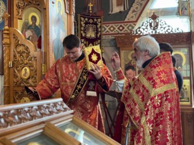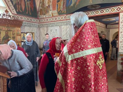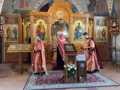 25 мая 2025 года, в Неделю 6-ю по Пасхе, о слепом, Божественную литургию в храме святого праведного Иоанна Кронштадтского на Кронштадтской площади совершил настоятель храма протоиерей Михаил Подолей в сослужении клира.
