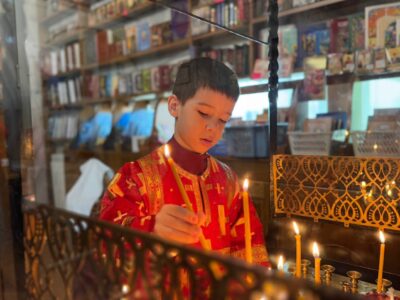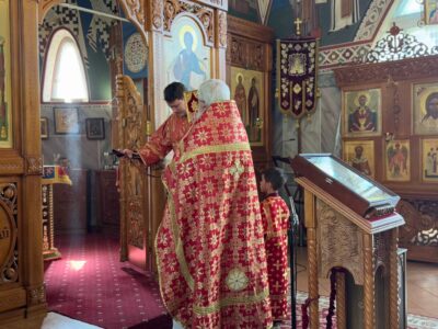 28 мая 2025 года, в день отдания праздника Пасхи, Божественную литургию в храме святого праведного Иоанна Кронштадтского на Кронштадтской площади совершил настоятель храма протоиерей Михаил Подолей в сослужении клира.