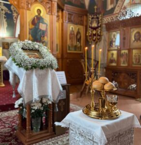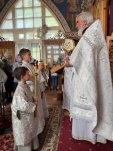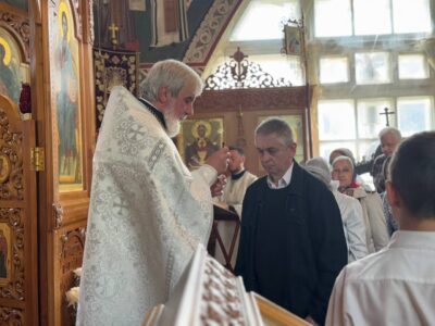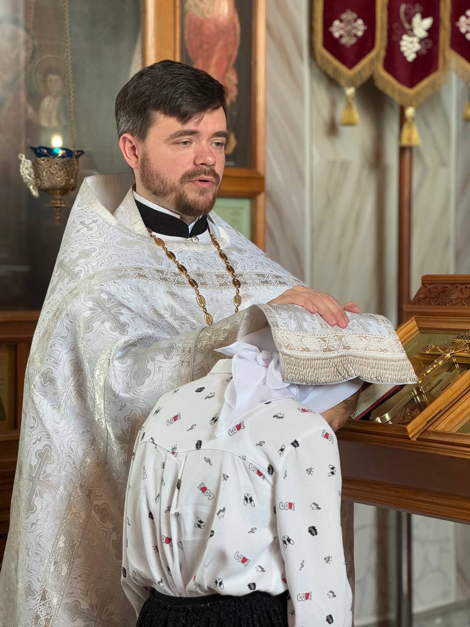 После Божественной литургии отец Михаил помазал молящихся освящённым елеем от иконы Спаса Всемилостивого. Настоятель пожелал, чтобы каждый относился к делу храмоздательства с любовью и усердием, а также с вниманием к каждому делу, к которому Господь призывает человека. Господь дает каждому разуметь, что необходимо для спасения.