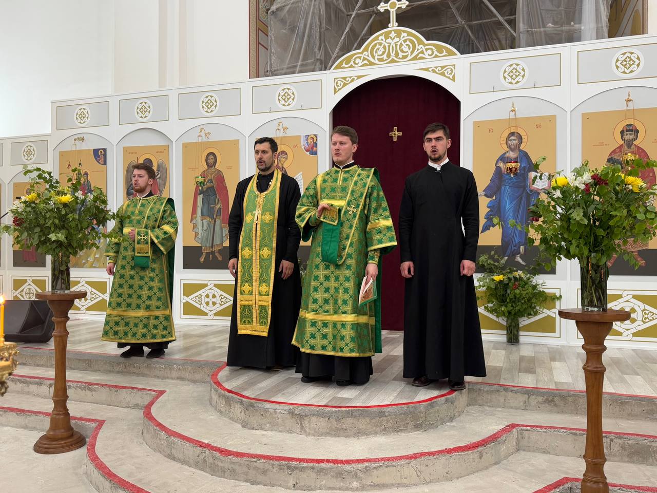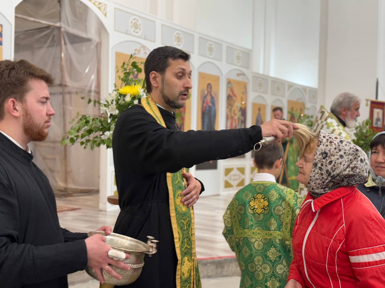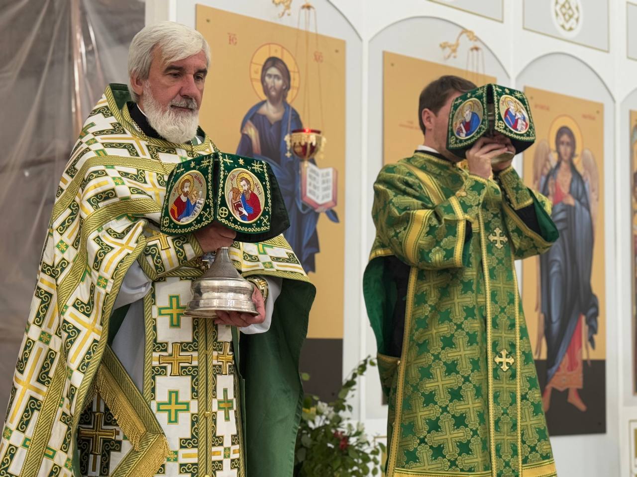 8 июня 2025 года, в день Святой Троицы, Божественную литургию в строящемся храме Всемилостивого Спаса совершил настоятель храма протоиерей Михаил Подолей. Его Высокопреподобию сослужили диаконы Эмануил Кричфалуший и Владимир Аношин. Была совершена вечерня с чтением коленопреклонных молитв.