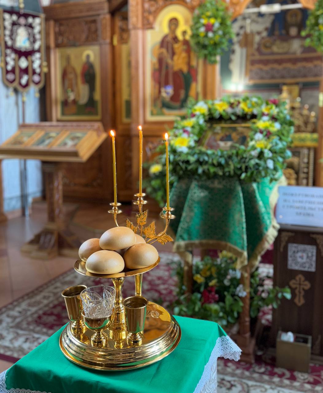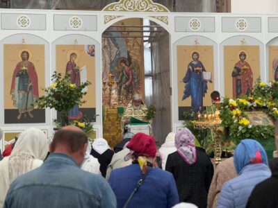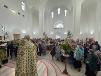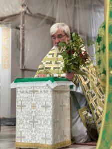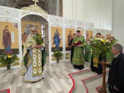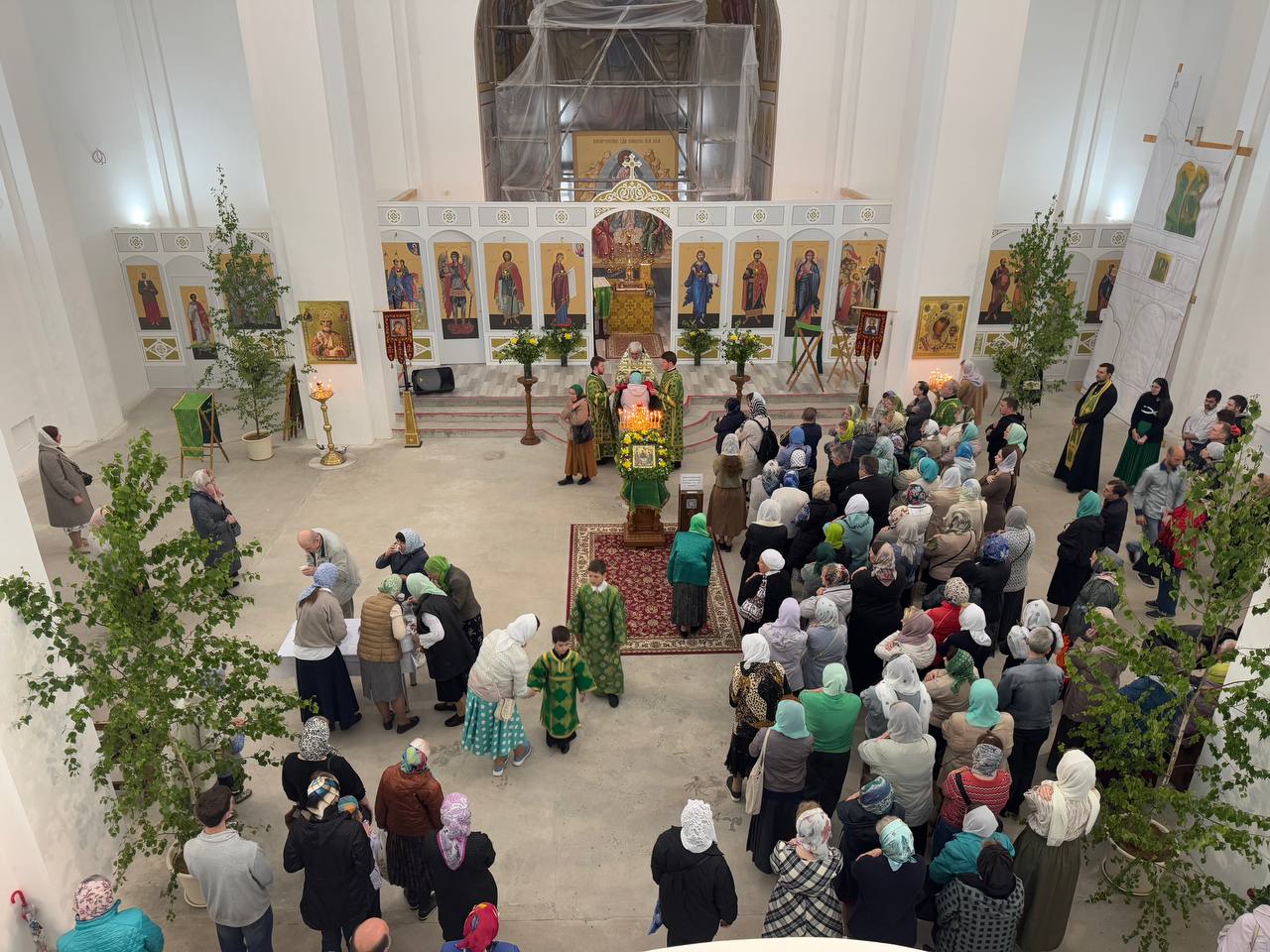 8 июня 2025 года, в день Святой Троицы, Божественную литургию в строящемся храме Всемилостивого Спаса совершил настоятель храма протоиерей Михаил Подолей. Его Высокопреподобию сослужили диаконы Эмануил Кричфалуший и Владимир Аношин. Была совершена вечерня с чтением коленопреклонных молитв.
