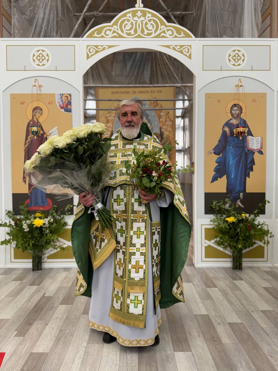 После богослужения священнослужители и прихожане поздравили настоятеля храма протоиерея Михаила Подолея с 30-летним юбилеем священнической хиротонии.