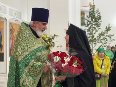 От лица духовенства отца Михаила поздравил иерей Михаил Бабич, преподнеся корзину с цветами.