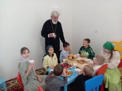 Батюшки пообщались в тёплой атмосфере за чаепитием, пожелали друг другу духовного благополучия, радости, праздника, и чтобы наша жизнь была подкреплением и утешением для верующих людей — чтобы им было легче спасаться.