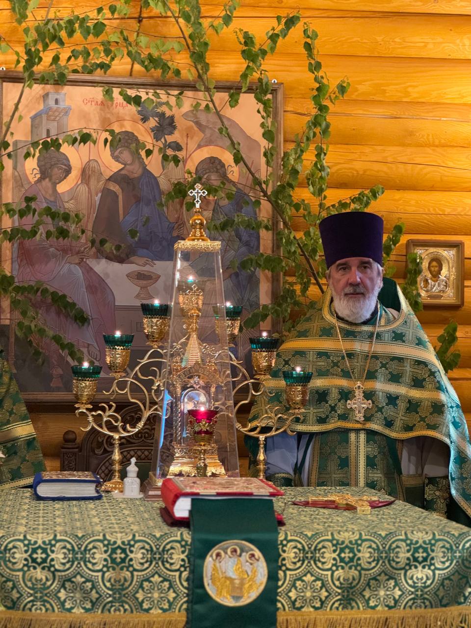 9 июня 2025 года, в день Святого Духа, Божественную литургию в храме Святой Живоначальной Троицы в пос. Дудергоф совершил настоятель храма протоиерей Михаил Подолей. Его Высокопреподобию сослужили иерей Константин Подолей и диакон Эмануил Кричфалуший.