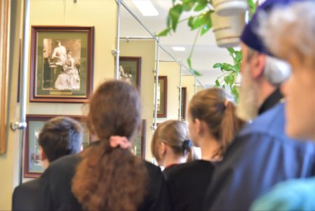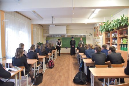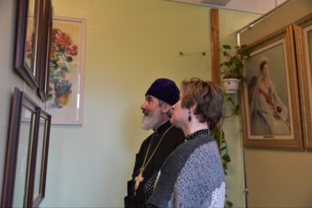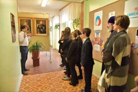 Прот. Михаил провел беседу с учащимися восьмых классов о Празднике Пасхи и о семейных ценностях на примере царской семьи. Затем Дмитрий Олегович Бохонский провел интересную и познавательную экскурсию по экспозиции выставки.