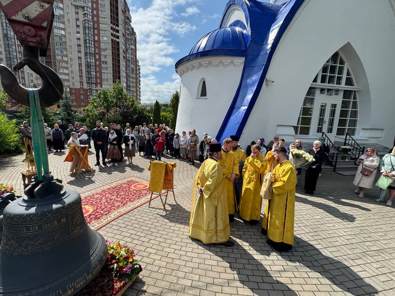 26 июня 2025 года митрополит Санкт-Петербургский и Ладожский Варсонофий совершил освящение колоколов храма Всемилостивого Спаса в сослужении протодиакона Андрея Левина. За богослужением молились секретарь Санкт-Петербургской епархии протоиерей Сергий Куксевич, благочинный Красносельского округа и настоятель храма протоиерей Михаил Подолей с клиром, благодетели и прихожане храма.
