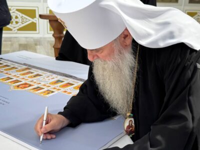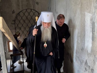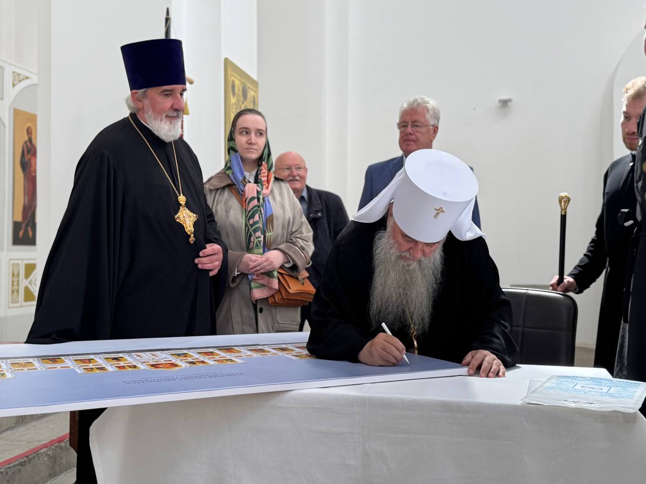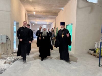 Владыка Варсонофий ознакомился с ходом строительства, посетил нижний (крестильный) и верхний храмы, осмотрел росписи в алтаре и подписал проект иконостаса (https://mitropolia.spb.ru/news/mitropolit/?id=269498).