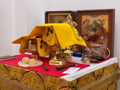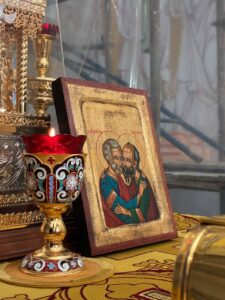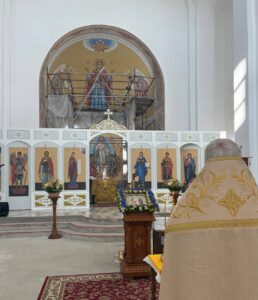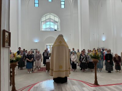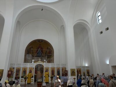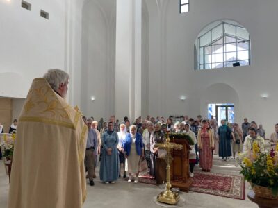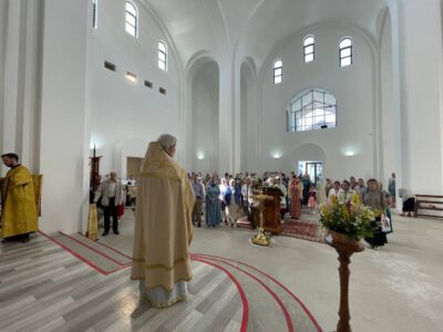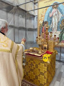 12 июля 2025 года, в день памяти святых апостолов Петра и Павла, Божественную литургию в строящемся храме Всемилостивого Спаса совершил настоятель храма протоиерей Михаил Подолей в сослужении клира. Был совершен молебен перед иконой апостолов Петра и Павла.