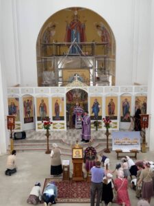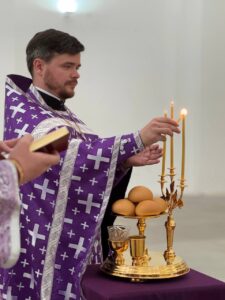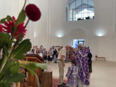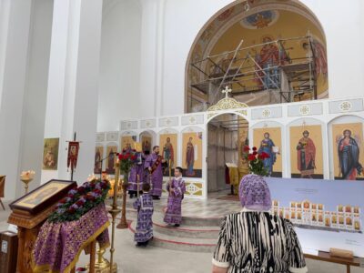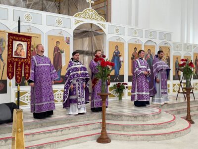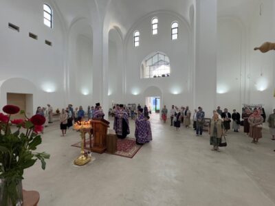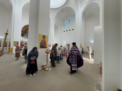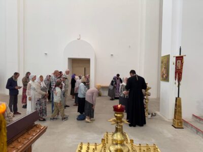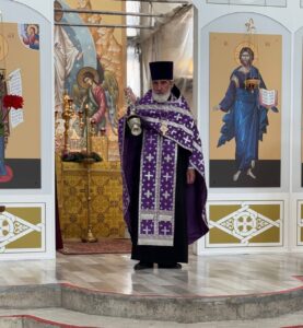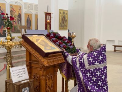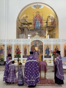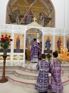 14 августа 2025 года, в праздник происхождения (изнесения) Честных Древ Животворящего Креста Господня, празднество Всемилостивому Спасу и Пресвятой Богородице, Божественную литургию в строящемся храме Всемилостивого Спаса совершил настоятель храма протоиерей Михаил Подолей. Его Высокопреподобию сослужили иерей Николай Терентьев, иерей Константин Подолей, диаконы Эмануил Кричфалуший и Петр Мерзляков.