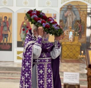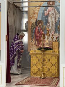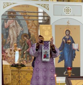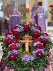 Накануне праздника, вечером, Всенощное бдение совершил также настоятель храма протоиерей Михаил Подолей в сослужении клира. На утрене после великого славословия был совершен вынос Креста и поклонение ему.
