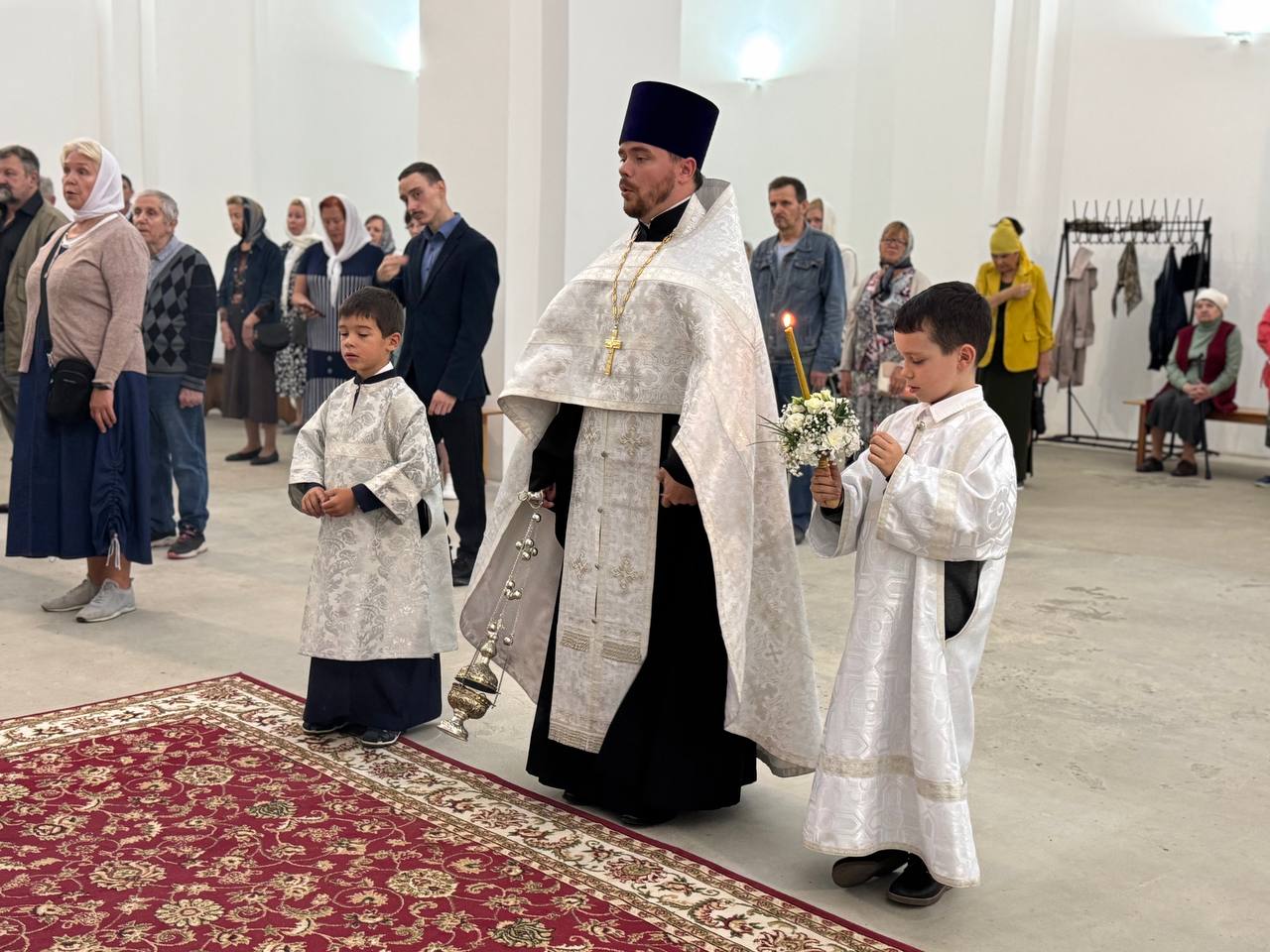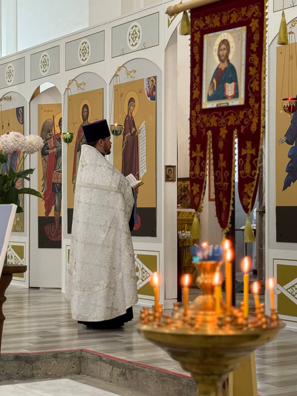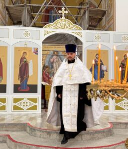 Накануне праздника, вечером 18 августа, Всенощное бдение в строящемся храме Всемилостивого Спаса совершил иерей Константин Подолей.