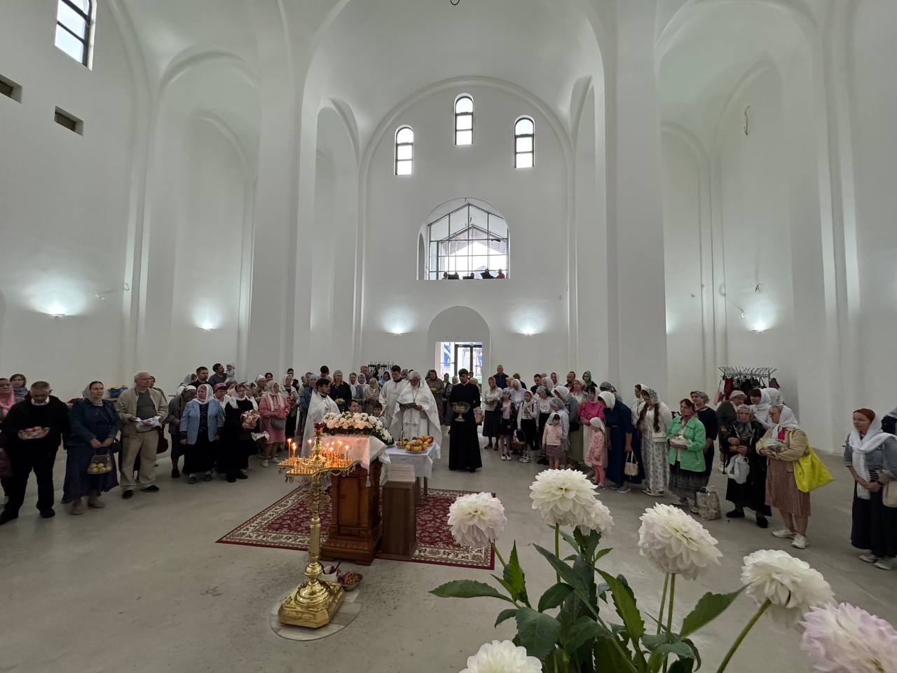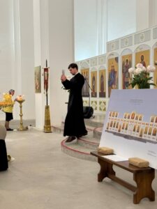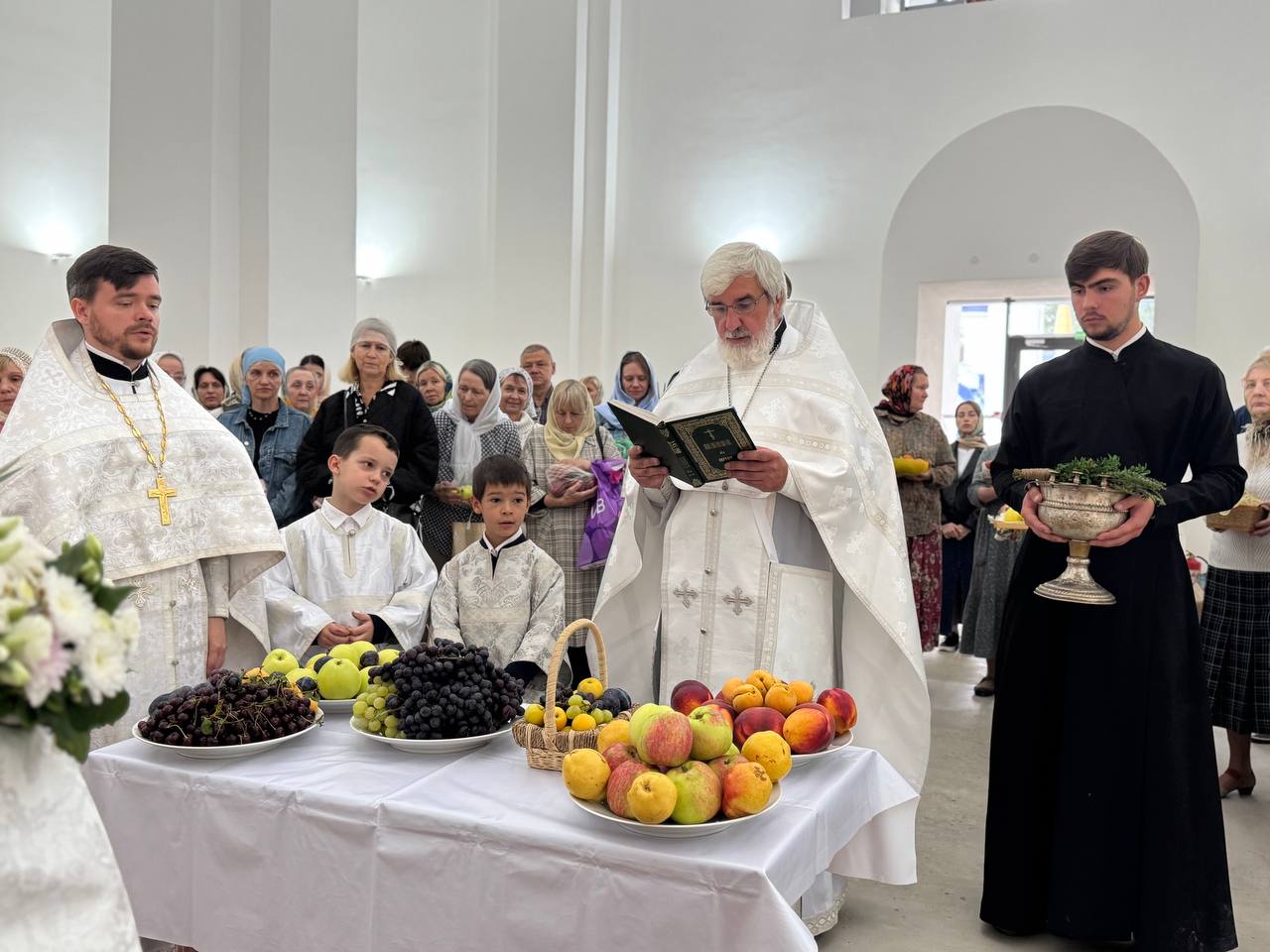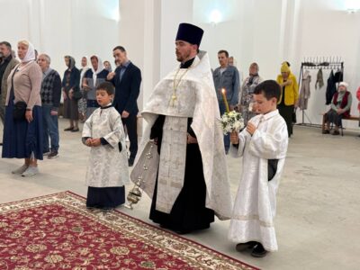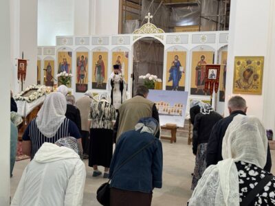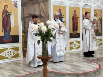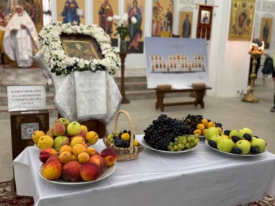 19 августа 2025 года, в праздник Преображения Господа Бога и Спаса нашего Иисуса Христа, Божественную литургию в строящемся храме Всемилостивого Спаса совершил настоятель храма протоиерей Михаил Подолей. Его Высокопреподобию сослужили иерей Константин Подолей и диакон Эмануил Кричфалуший. После богослужения было совершено освящение винограда и плодов нового урожая.