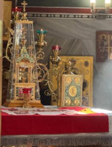 22 августа 2025 года, в пятницу седмицы 11-й по Пятидесятнице, день памяти апостола Матфия, Божественную литургию в храме святого праведного Иоанна Кронштадтского на Кронштадтской площади совершил настоятель храма протоиерей Михаил Подолей.