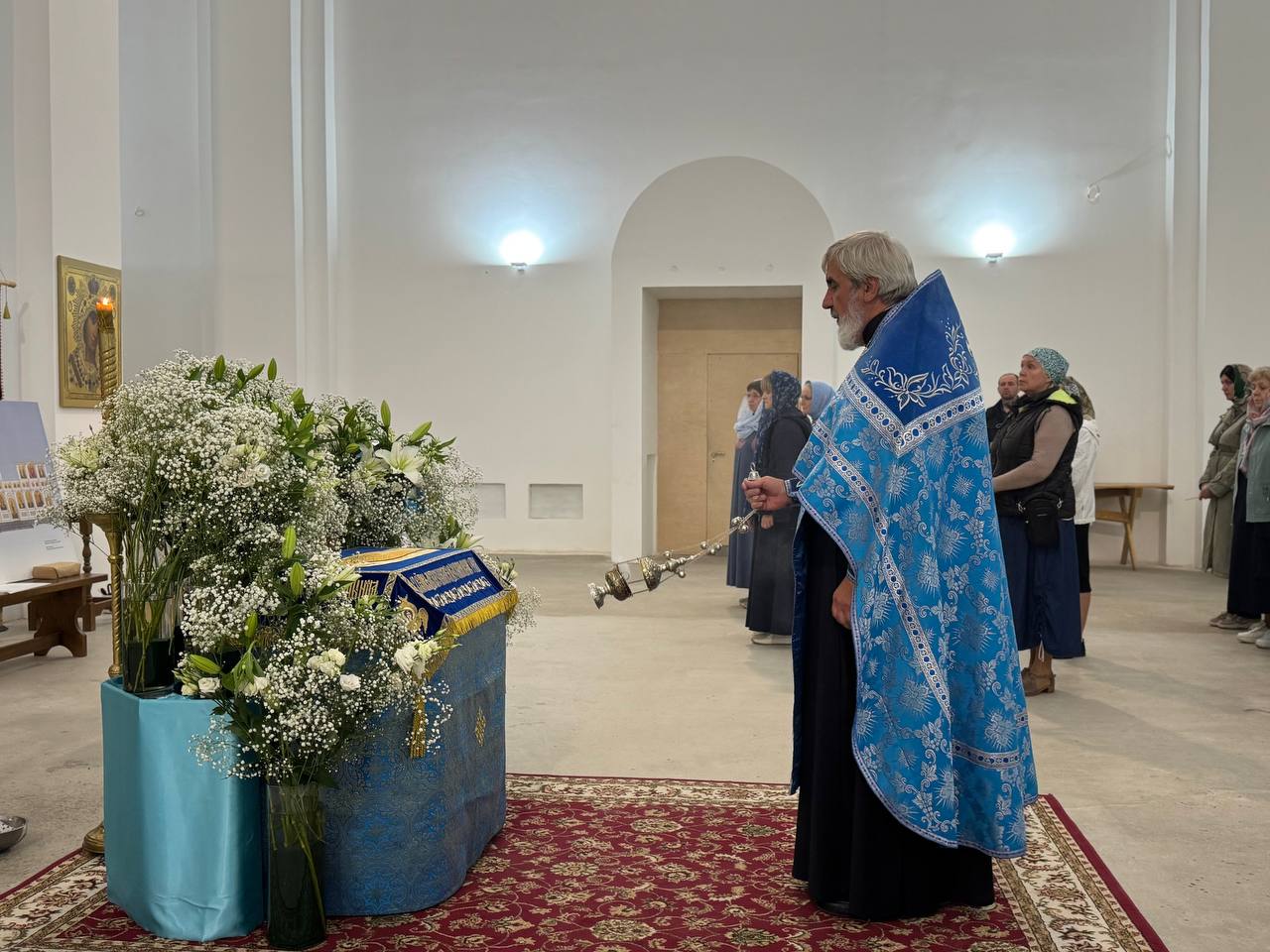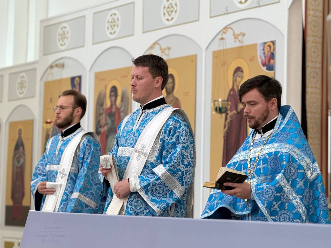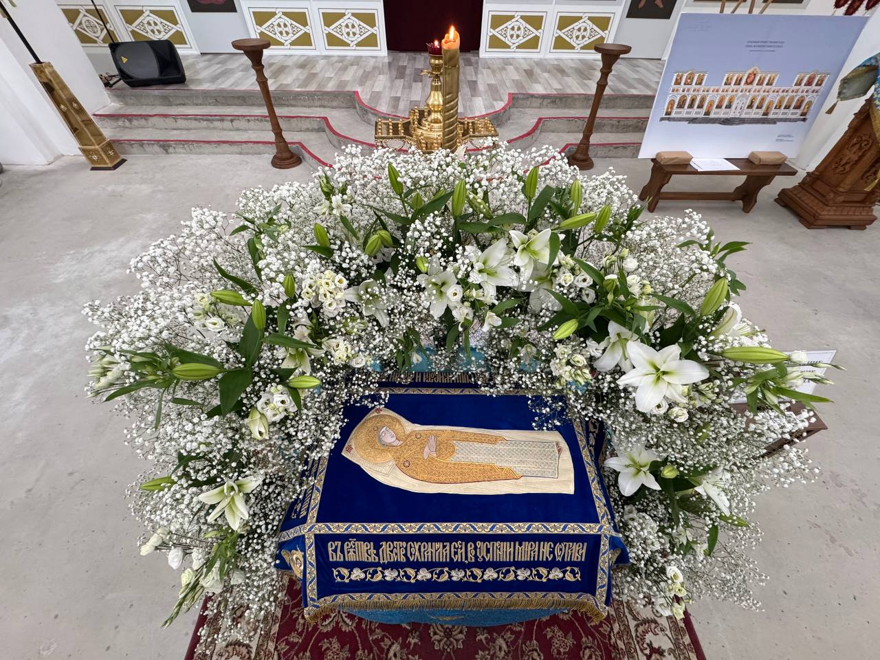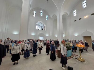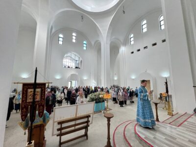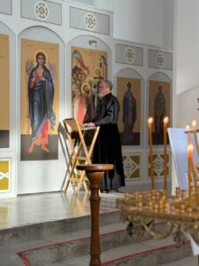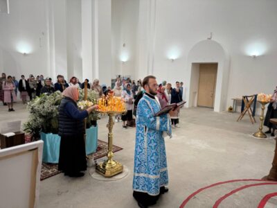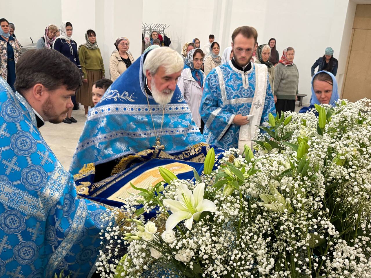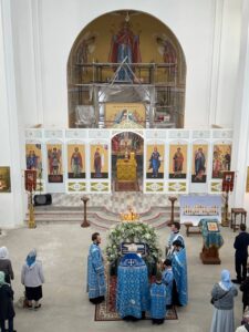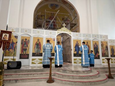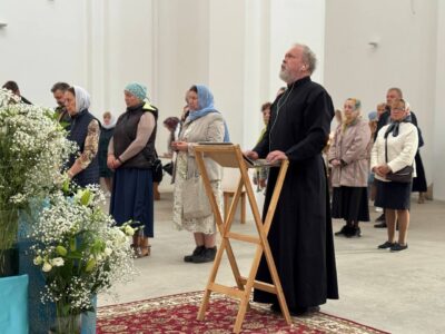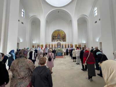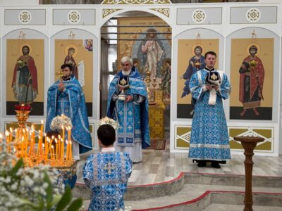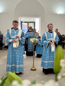 28 августа 2025 года, в праздник Успения Пресвятой Владычицы нашей Богородицы и Приснодевы Марии, Божественную литургию в строящемся храме Всемилостивого Спаса совершил настоятель храма протоиерей Михаил Подолей. Его Высокопреподобию сослужили иерей Константин Подолей, диаконы Эмануил Кричфалуший и Николай Борисов.