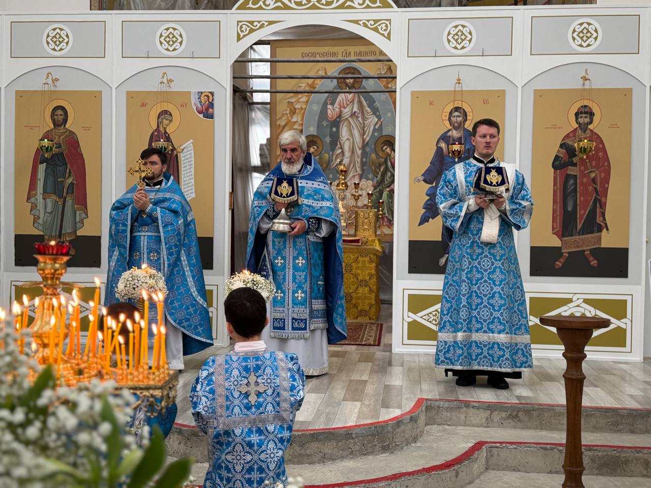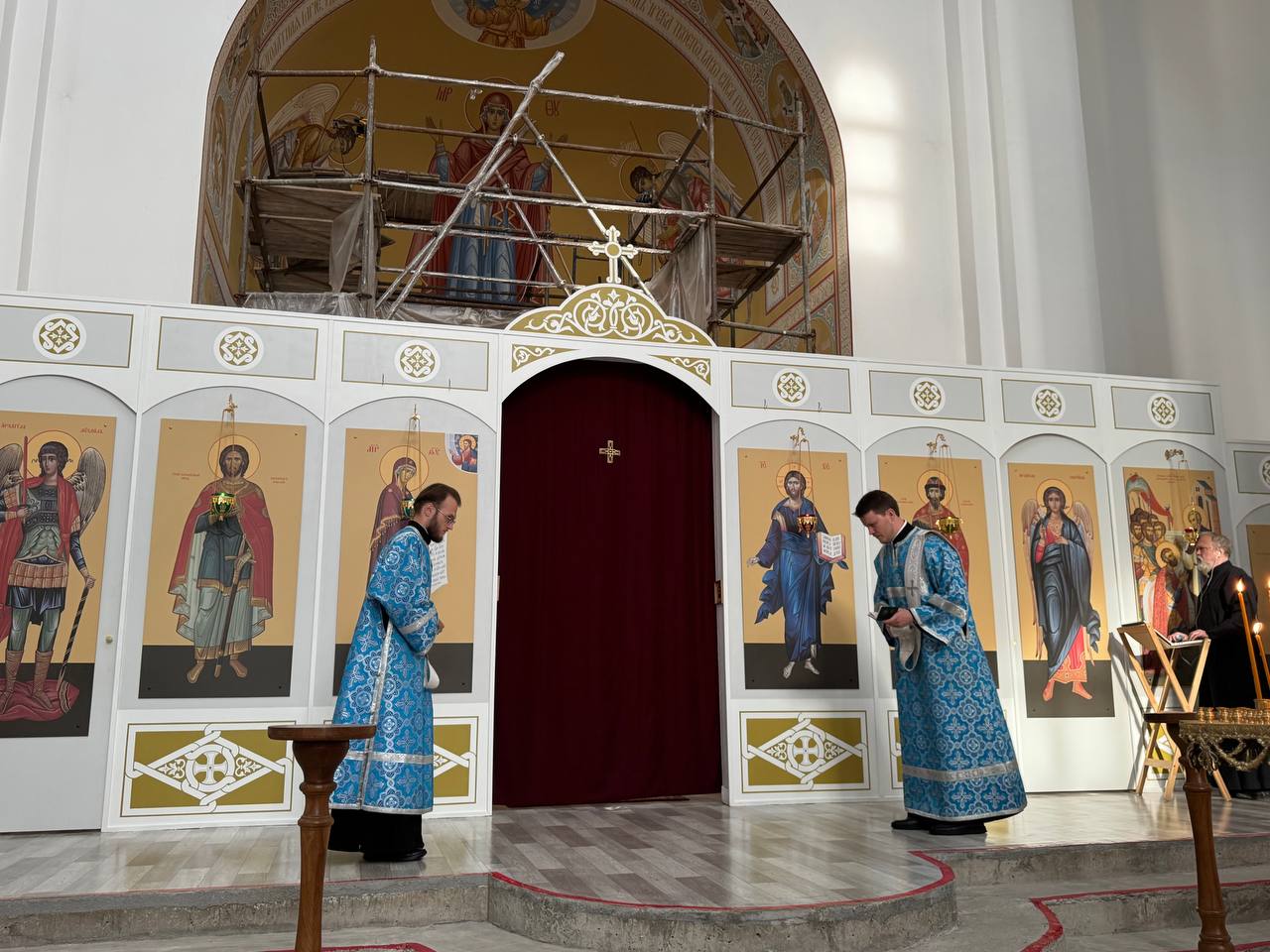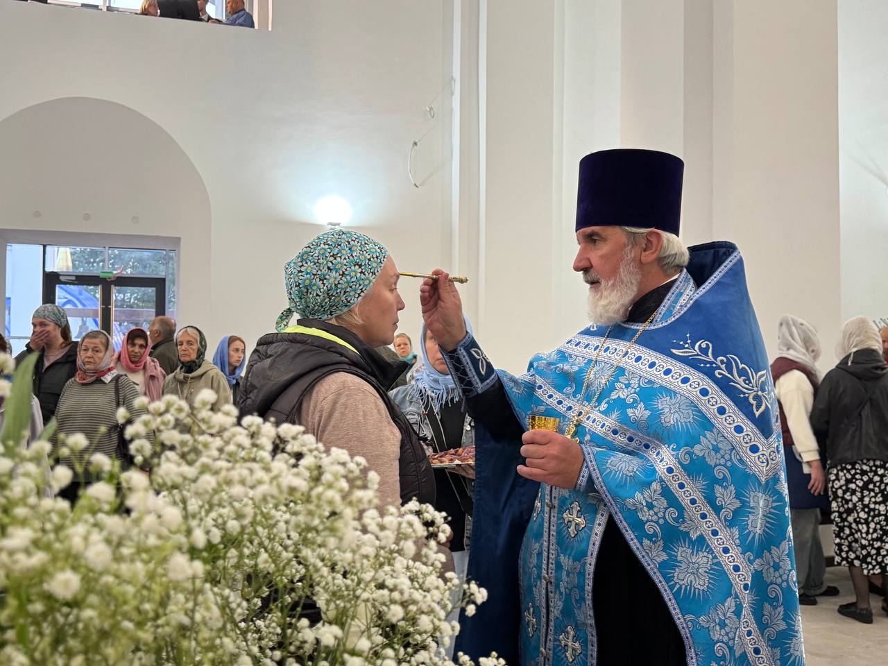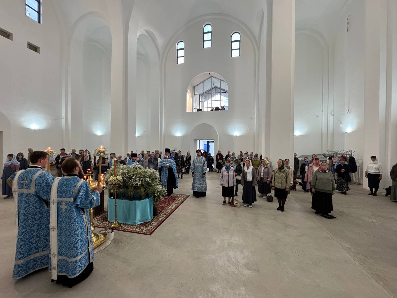 28 августа 2025 года, в праздник Успения Пресвятой Владычицы нашей Богородицы и Приснодевы Марии, Божественную литургию в строящемся храме Всемилостивого Спаса совершил настоятель храма протоиерей Михаил Подолей. Его Высокопреподобию сослужили иерей Константин Подолей, диаконы Эмануил Кричфалуший и Николай Борисов.