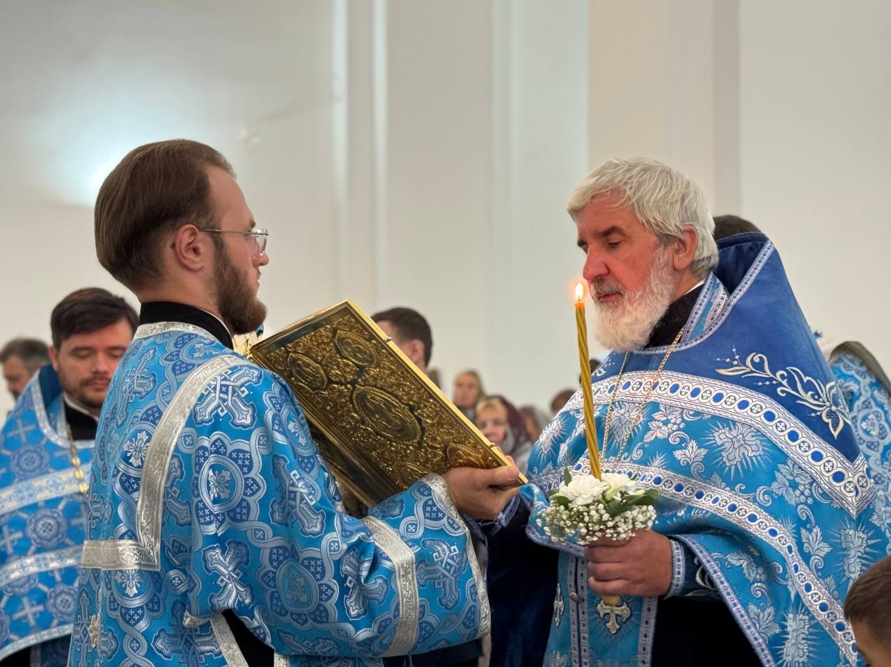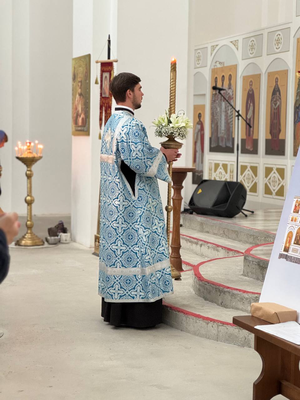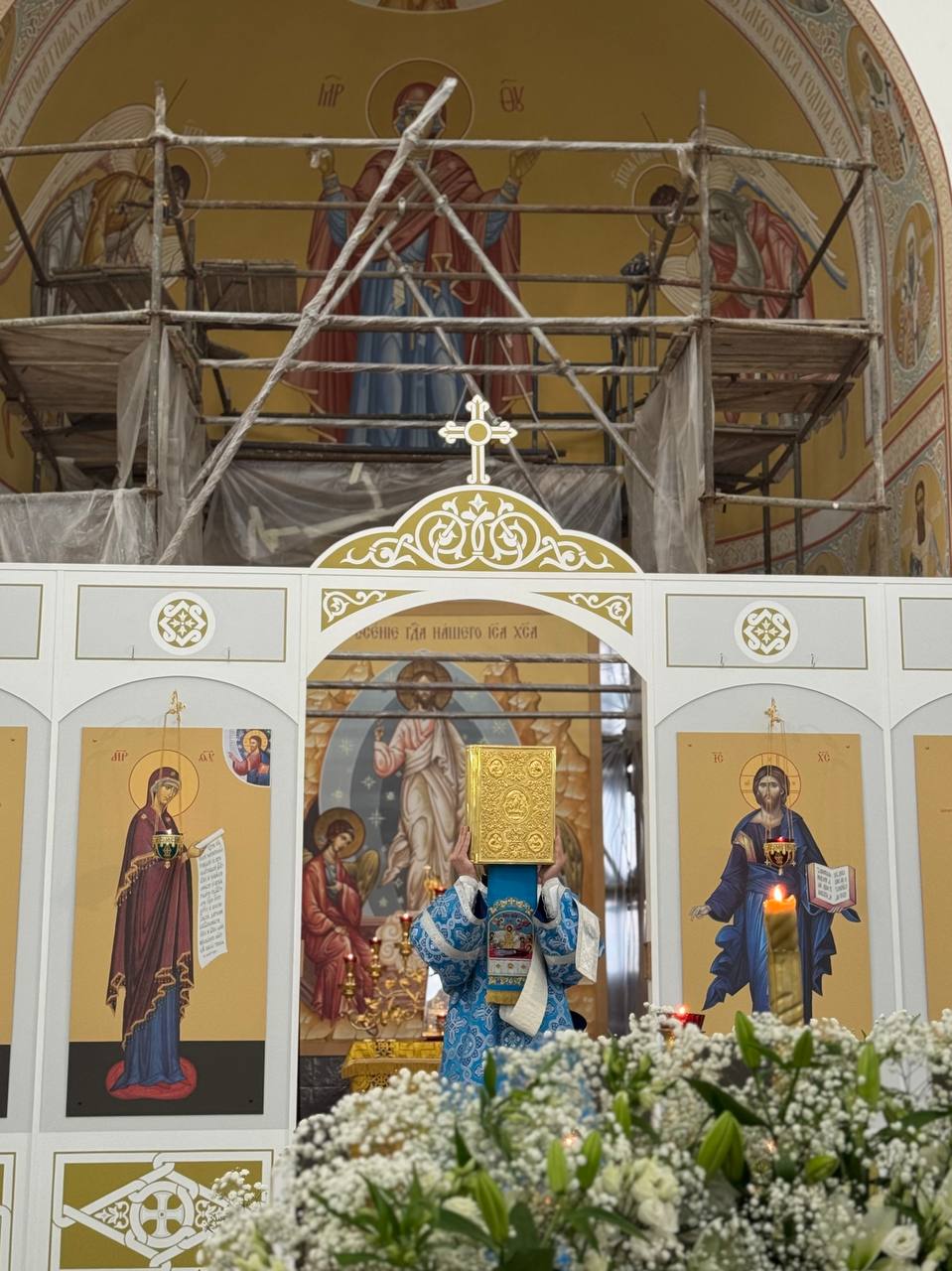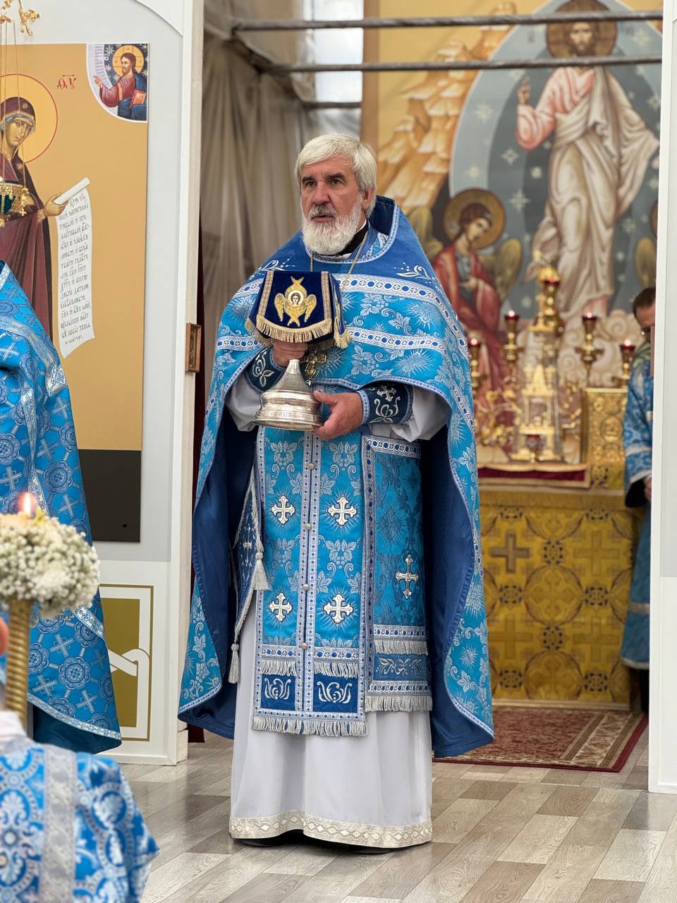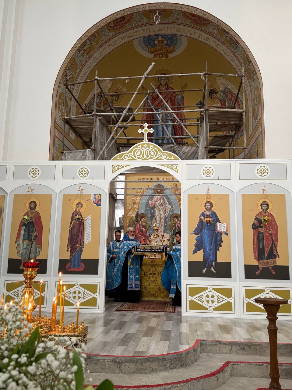 28 августа 2025 года, в праздник Успения Пресвятой Владычицы нашей Богородицы и Приснодевы Марии, Божественную литургию в строящемся храме Всемилостивого Спаса совершил настоятель храма протоиерей Михаил Подолей. Его Высокопреподобию сослужили иерей Константин Подолей, диаконы Эмануил Кричфалуший и Николай Борисов.
