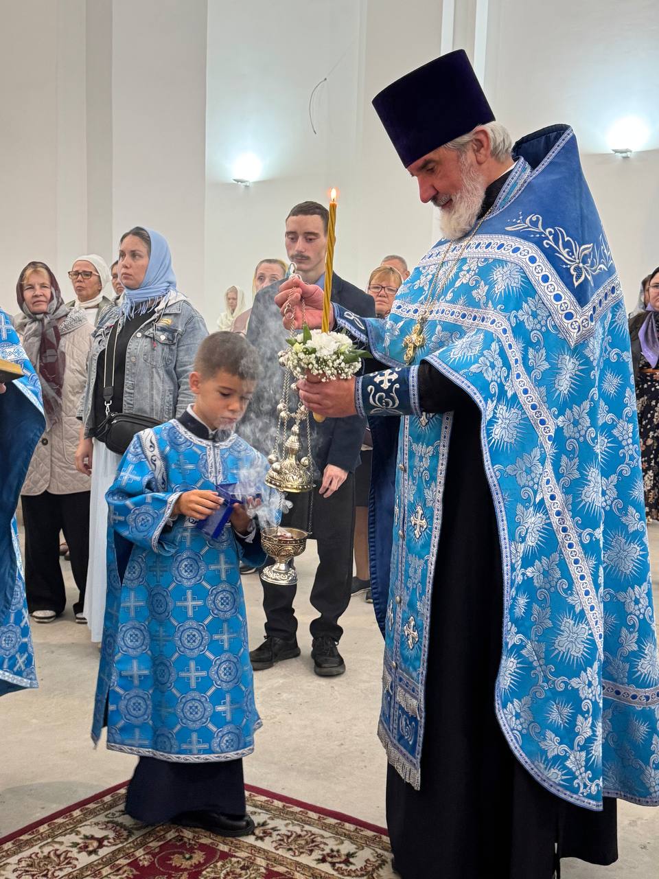 Всенощное бдение накануне вечером с чтением акафиста Успению Пресвятой Богородице совершил также настоятель храма протоиерей Михаил Подолей в сослужении клира. Был совершен вынос плащаницы Пресвятой Богородицы.