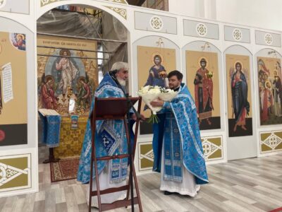 После богослужения настоятель храма тепло поздравил иерея Константина Подолея с четвертой годовщиной священнической хиротонии и пожелал ему Божией помощи в пастырском служении.