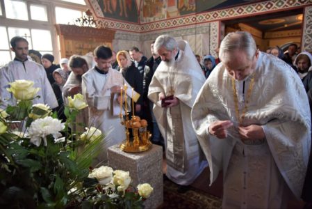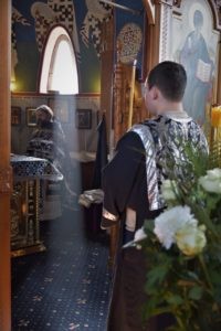 И ныне: Мироносицам женам, при гробе представ, Ангел вопияше: мира мертвым суть прилична, Христос же истления явися чуждь.