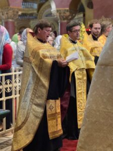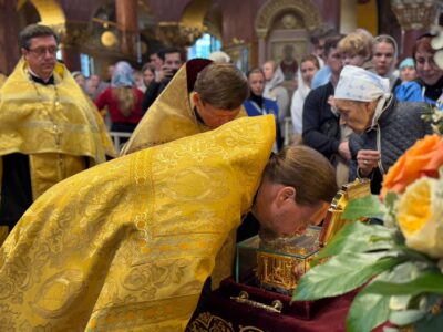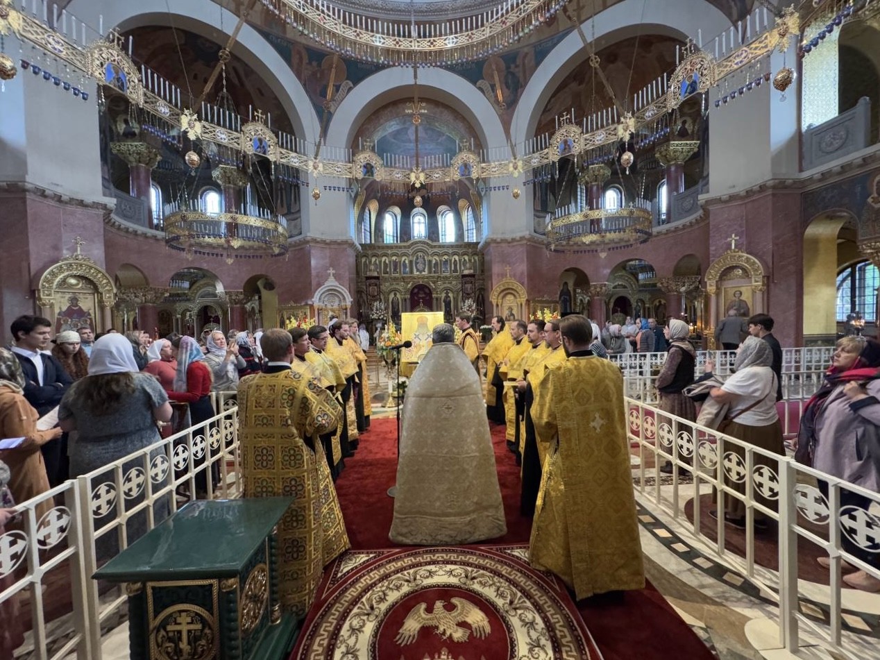 14 сентября 2025 года клирики храмов Красносельского благочиния молились перед ковчегом с частицей мощей святителя Луки Крымского из Свято-Троицкого монастыря Симферополя в Казанском храме Новодевичьего монастыря.