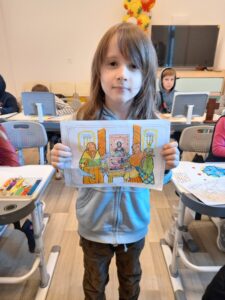 В субботу, в праздник Всемирного Воздвижения Честного и Животворящего Креста Господня, после молитвы в храме Всемилостивого Спаса за Божественной литургией у ребят младшей группы было два урока: Зернышки (Закон Божий, рукоделие), преподаватели — Наместникова Ирина Прокопьевна, Покровская Ирина Васильевна и Основы церковного и хорового пения (преподаватель — Иванова Марианна Максимовна).