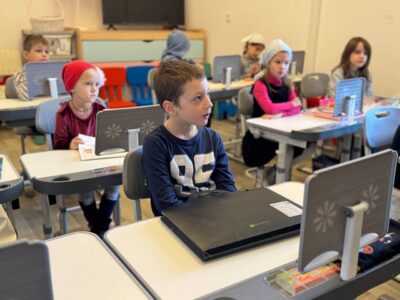 Воскресный день для детей начался молитвой за Литургией в храме Всемилостивого Спаса. После богослужения в старшей группе воскресной школы были проведены два занятия: История Христианской Церкви (преподаватель — иерей Николай Терентьев) и Основы церковного и хорового пения (преподаватель — Иванова Марианна Максимовна).