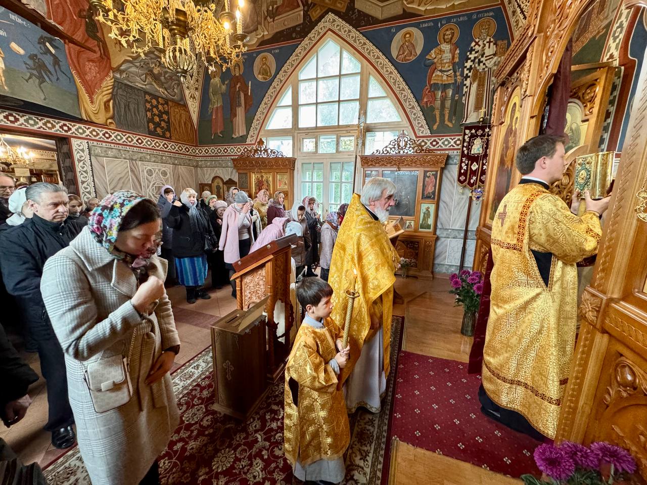 5 октября 2025 года, в Неделю 17-ю по Пятидесятнице, Божественную литургию в храме святого праведного Иоанна Кронштадтского на Кронштадтской площади совершил настоятель храма протоиерей Михаил Подолей в сослужении клира.
