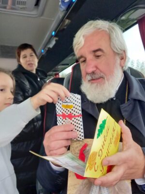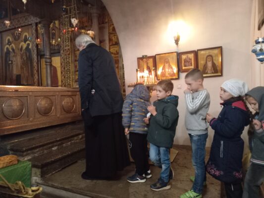 Перед отъездом домой дети трогательно поздравили учителей и отца Михаила с праздником Дня Учителя, рассказав стихи и подарив поделки, которые сделали своими руками.
