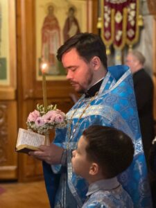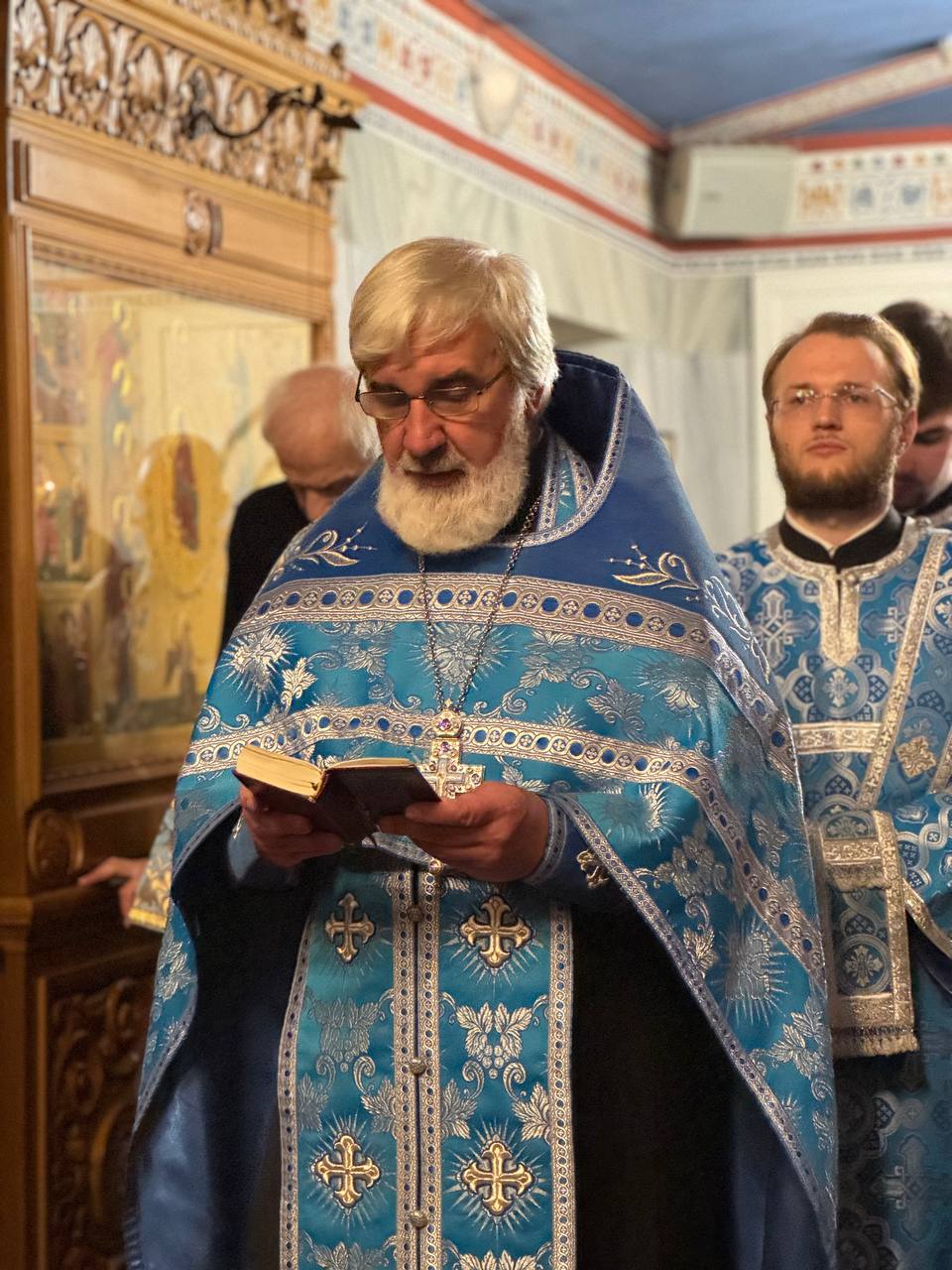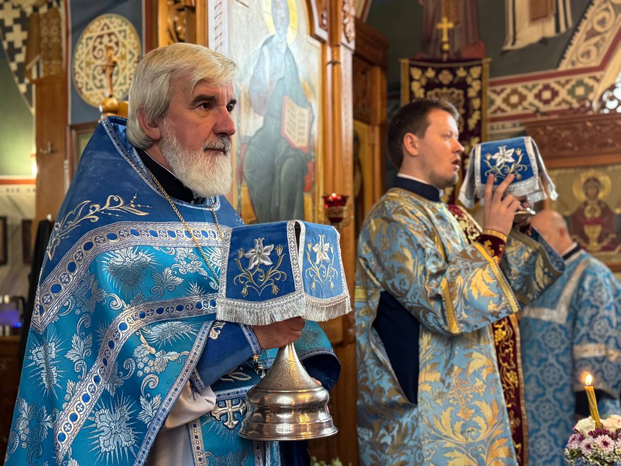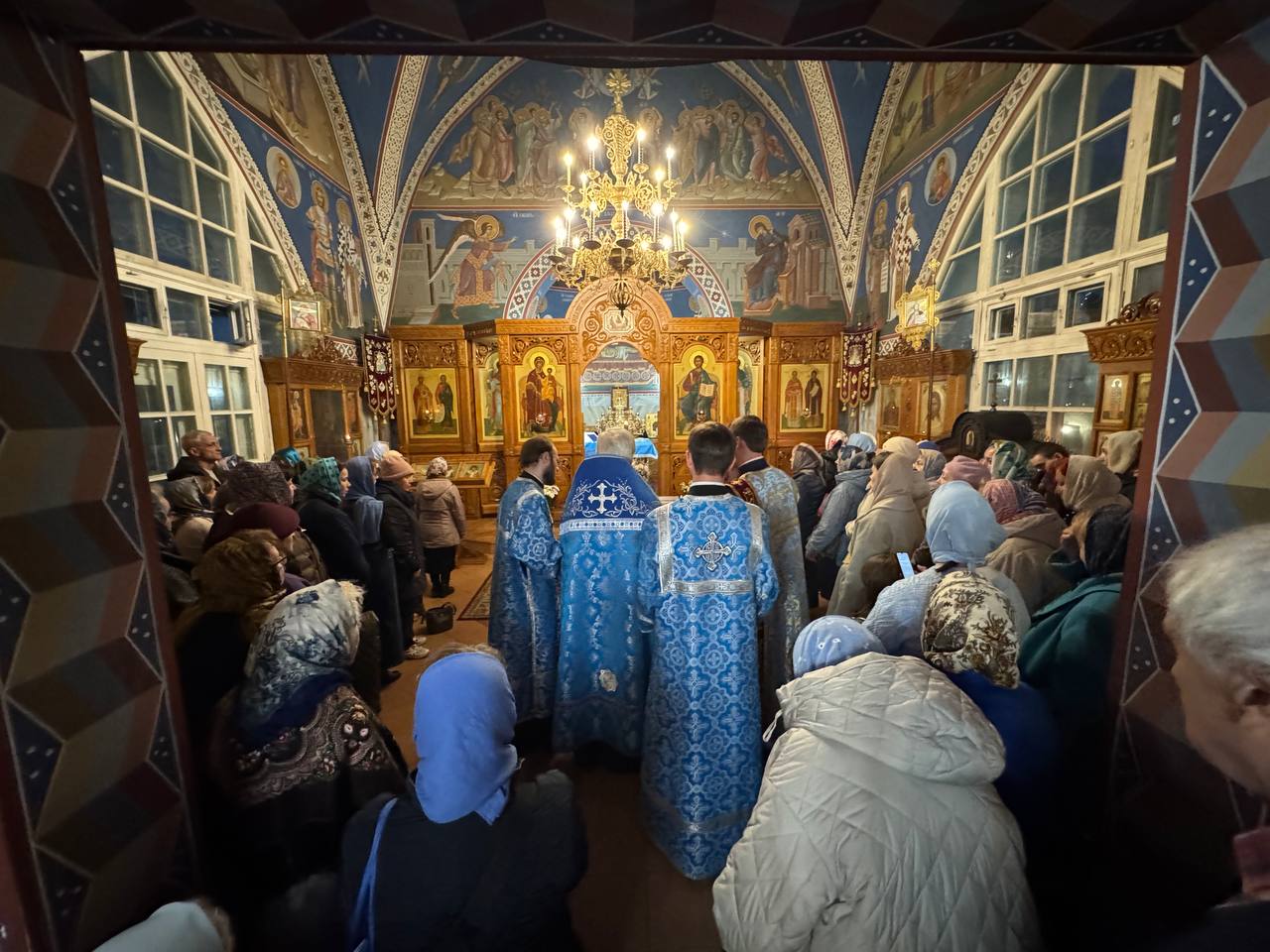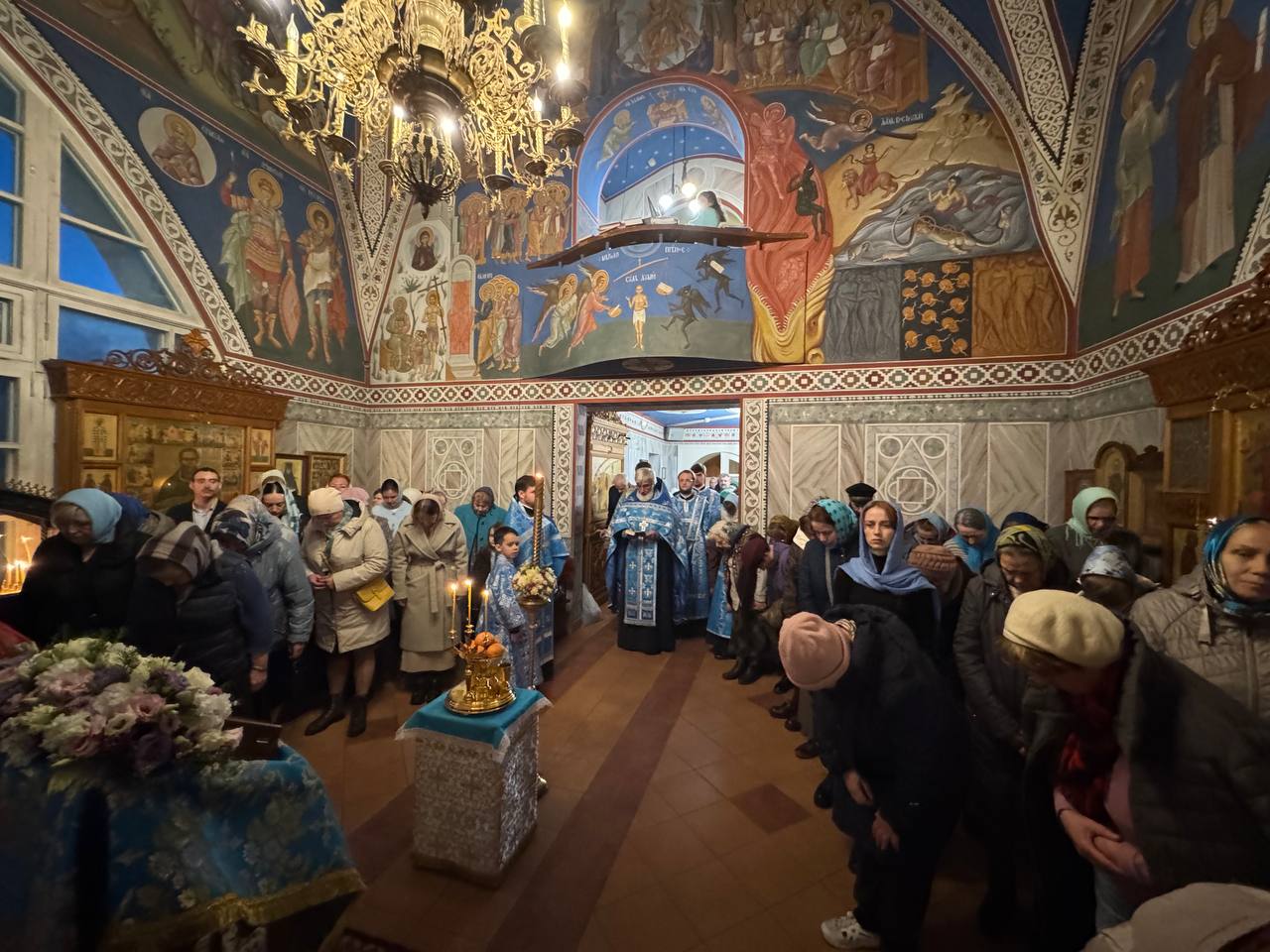 Накануне праздника, вечером 13 октября, Всенощное бдение с чтением акафиста Пресвятой Богородице совершил также настоятель храма протоирей Михаил Подолей. Его Высокопреподобию сослужили иерей Константин Подолей, диаконы Эмануил Кричфалуший и Николай Борисов.